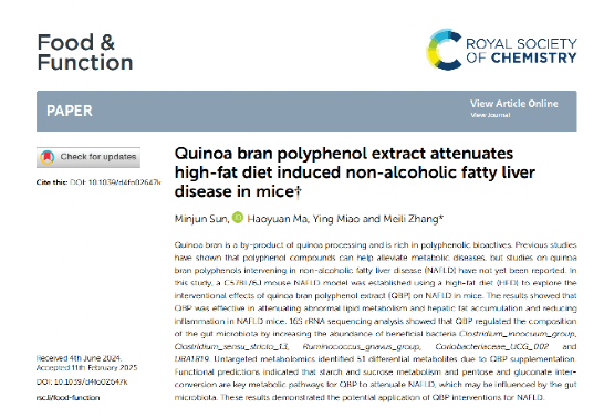 我校我院张美莉教授课题组在《Food & Function》发表最新研究成果