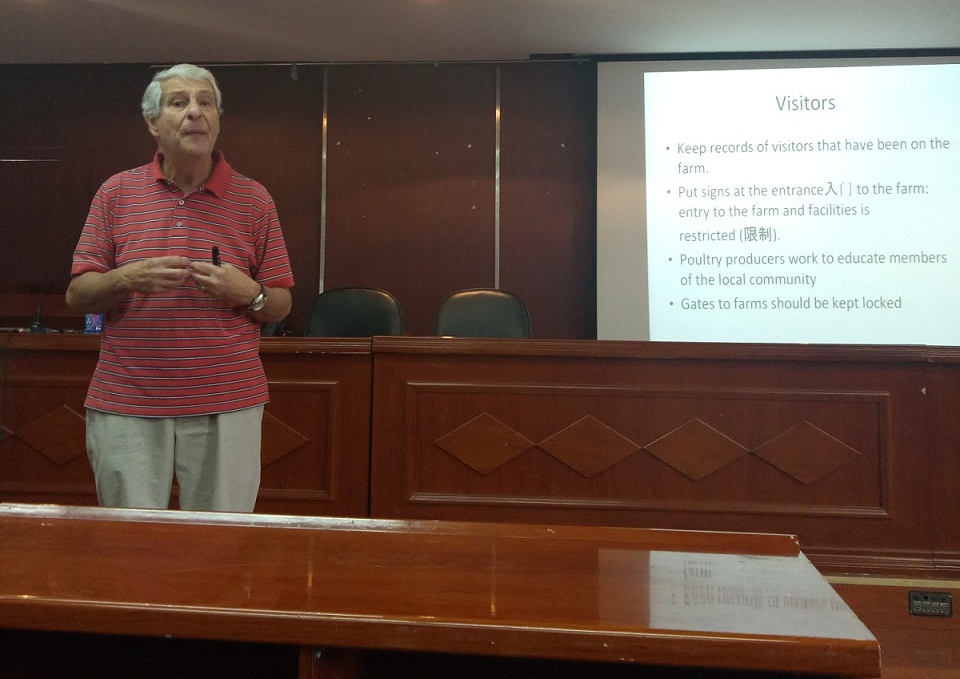 讲座中Gregory Blank教授围绕农场生物安全性,介绍了随着农场规模和动物数量的增加而出现的一些跨国企业,阐述了农场运营中有序性和规范性的重要性,讲解了畜禽在养殖过程可能出现的微生物污染以及预防解决的相关措施。在鲜切果蔬加工方面,Gregory Blank教授生动、详实地介绍了加拿大鲜切果蔬加工技术及针对不同消费人群所制定的营销方案。他从食品安全性角度阐述了如何保障鲜切果蔬的安全性。同时,还分析了该技术与传统售卖相比,在省时、提高农产品附加值方面的优势。