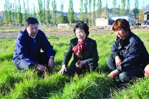 云锦凤教授(中)在蒙农杂种冰草种植基地。 |