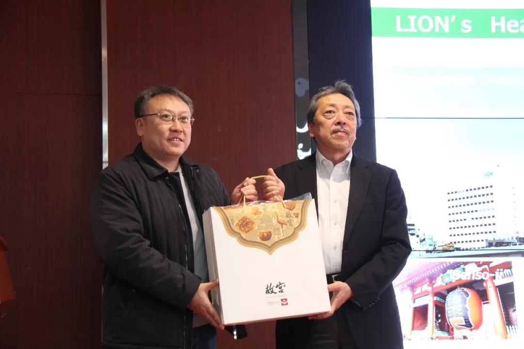 内蒙古营养学会理事长郭军教授向村越倫明博士赠送礼物 王再明/摄