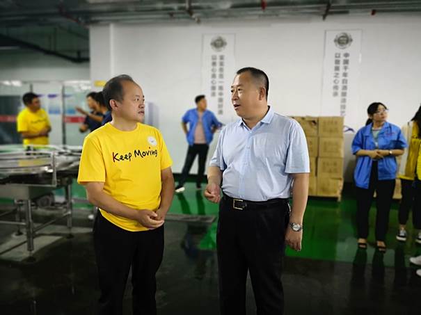 董同力嘎院长与哈达江酒业有限公司负责人在生产车间进行交流