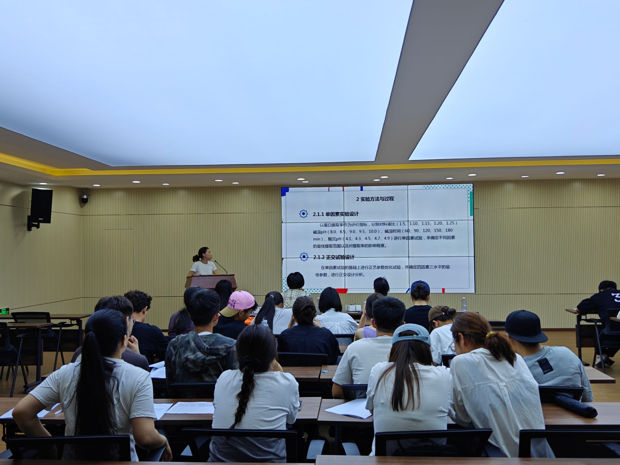 答辩现场,同学们纷纷展示了他们的创新实验成果。这些研究不仅涵盖了食品加工的各个方面,如新型食品的开发、传统食品工艺的改良,还涉及食品营养与安全等前沿领域。同学们通过精心制作的PPT和现场讲解,向评委和观众详细阐述了实验的目的、方法、结果以及创新点。