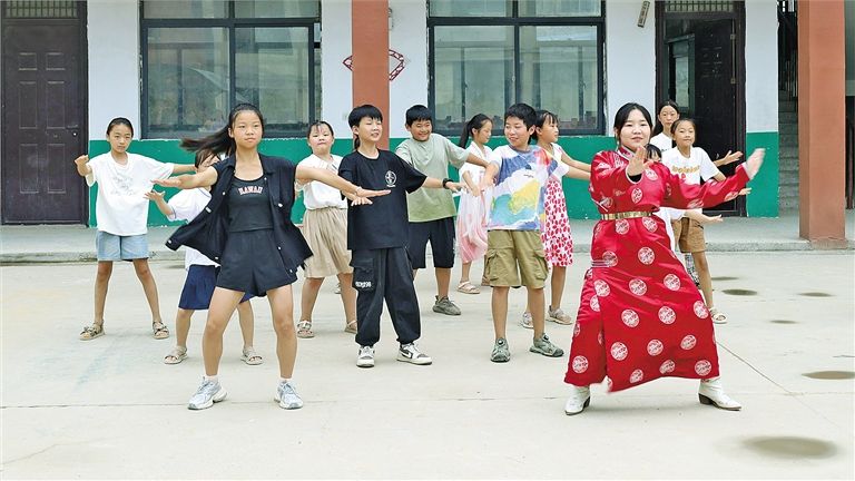 在孔集乡,许多孩子因父母外出务工而成为留守儿童。他们在成长过程中面临家庭教育缺失、情感关怀不足、语言环境方言化严重、多元化发展受限等诸多挑战。了解到这一情况后,服务队精心设计了一系列丰富多彩的课程内容,不仅包含食品营养与安全、音乐、美术、体育、自然科学、红色教育、科学实验非遗手工制作等13门课程,还特别利用晨读、诗词朗诵、红歌学习等方式进行国通语推广。