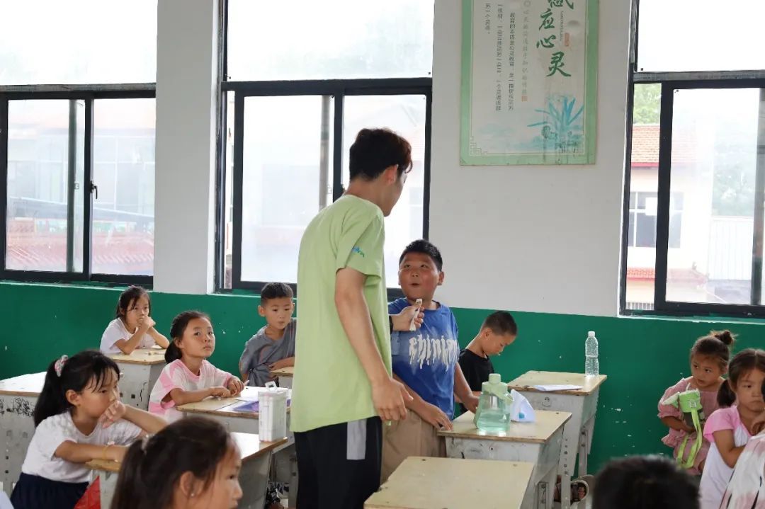 实践队成员采用走访、问卷调查等形式进行调研。调研发现当地村民在日常生活中使用河南方言较多,村中学校大部分教师在教学过程中使用方言授课。针对发现的问题,实践队成员精心策划活动。在学校组织孩子们用普通话诵读经典诗词,在抑扬顿挫中感受普通话的音韵之美;绕口令比赛中,“四是四,十是十,十四是十四,四十是四十”,虽然说得磕磕绊绊,但在队员们的耐心指导下,孩子们的进步显而易见。针对当地的方言中“n”“l”不分的情况,队员们通过有趣的发音练习,让孩子们逐渐掌握正确的发音方法。同时,志愿者们还充分利用多媒体资源,为孩子们播放正确使用轻声和儿化音的教学视频后,孩子们纷纷模仿,课堂充满欢声笑语。课后,志愿者们也没有停下脚步。他们积极向学生家长和村民们发放推普宣传手册,耐心介绍普通话在现代社会中的重要性。通过与家长和村民的深入交流,让他们认识到学好说好普通话的重要性。
