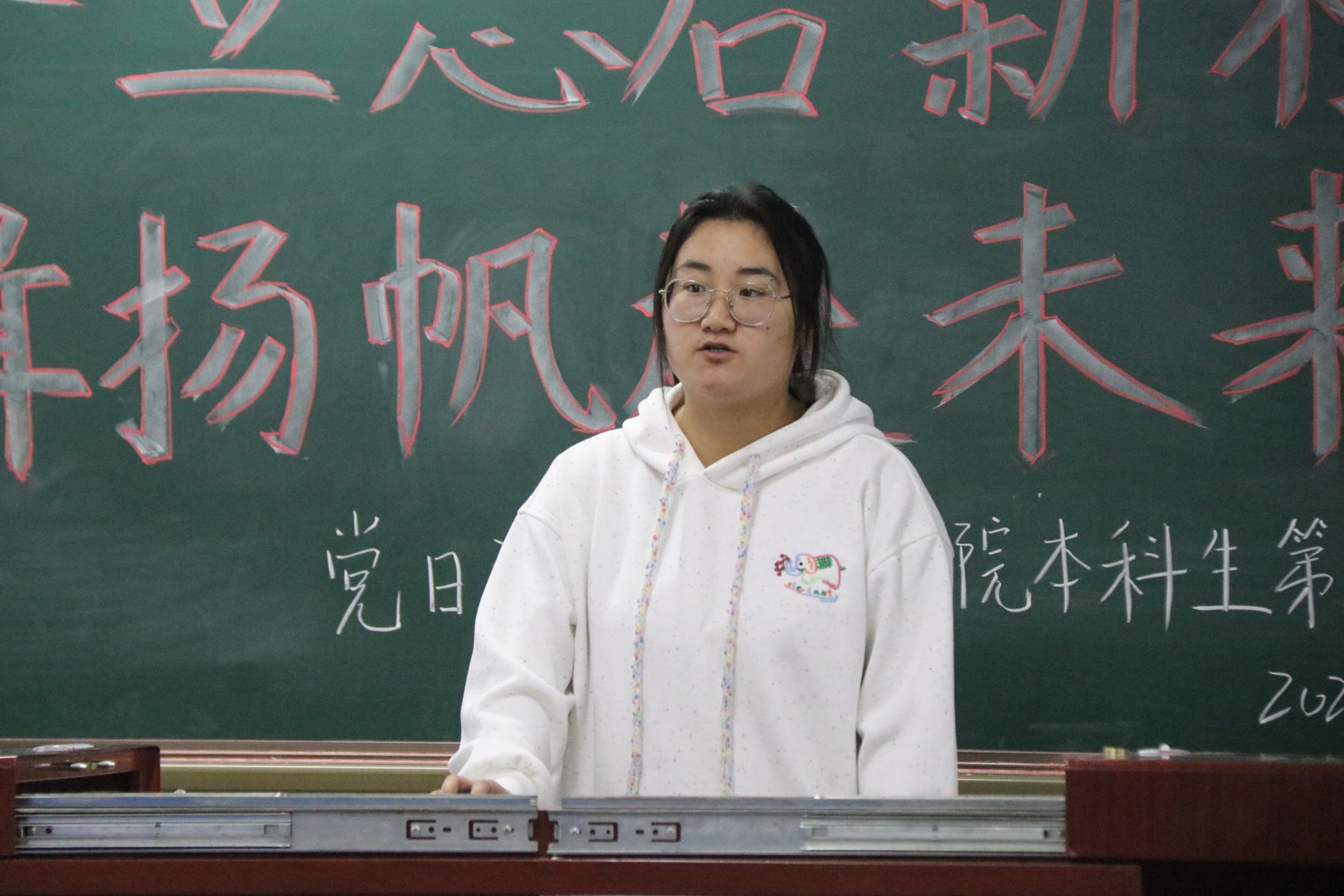 四位党员同学分别从专业学习、英语学习、校园文化活动,创新创业竞赛等多个角度,详尽地分享了她们的学习规划和心得。她们一致认为,要想完善自我、有所进步,必须扎实打好专业基础,提升个人综合素质。大家还提到了团队合作、时间管理、人际沟通等能力的重要性。
