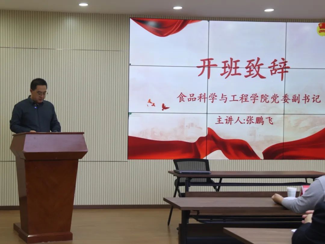 在歌唱国歌团歌以及晨读环节后,张鹏飞书记作开班仪式讲话。他对晨读活动给予了充分肯定,对开设“青马班”的重要意义和价值进行深入阐述。他指出,“青马工程”是党交付给共青团的一项重要政治任务,是共青团巩固党执政的青年群众基础、确保党的事业兴旺发达、后继有人的一项“政治工程”。他对全体学员提出要求和希望,要坚定理想信念,强化政治引领;要厚植家国情怀,锤炼过硬本领;要勤学善思肯干,勇毅担当作为;要注重团结协作,发挥集体力量。