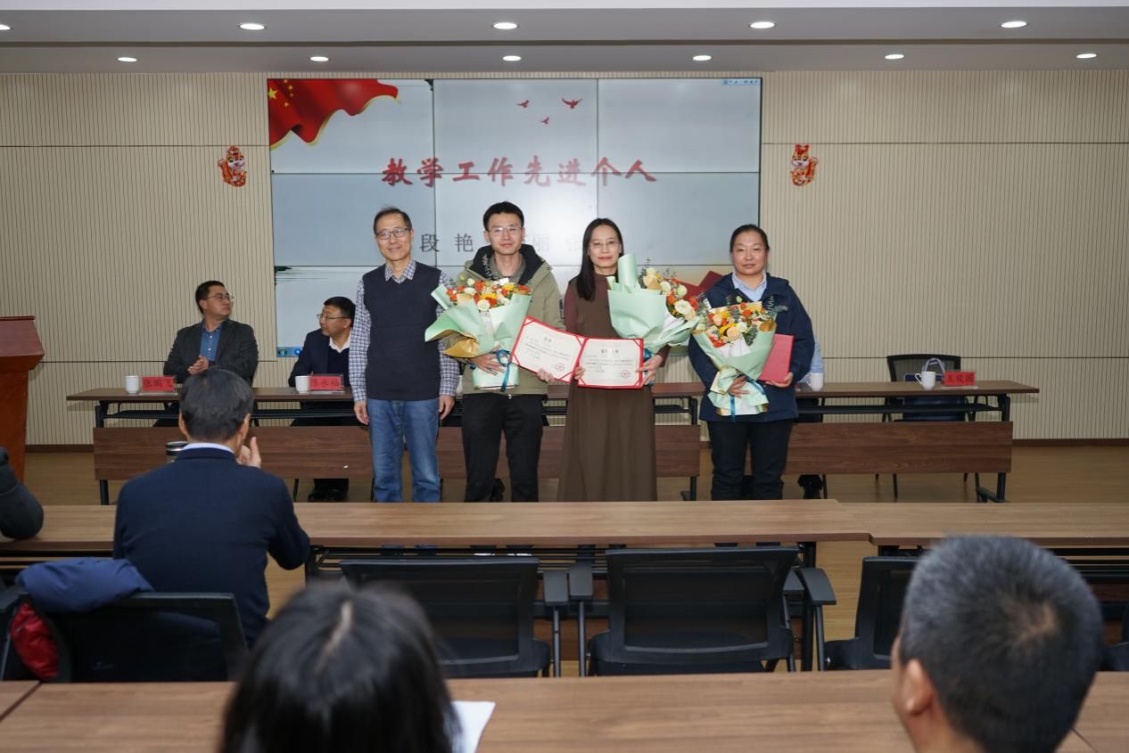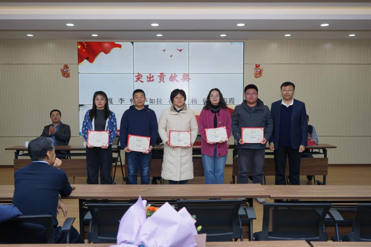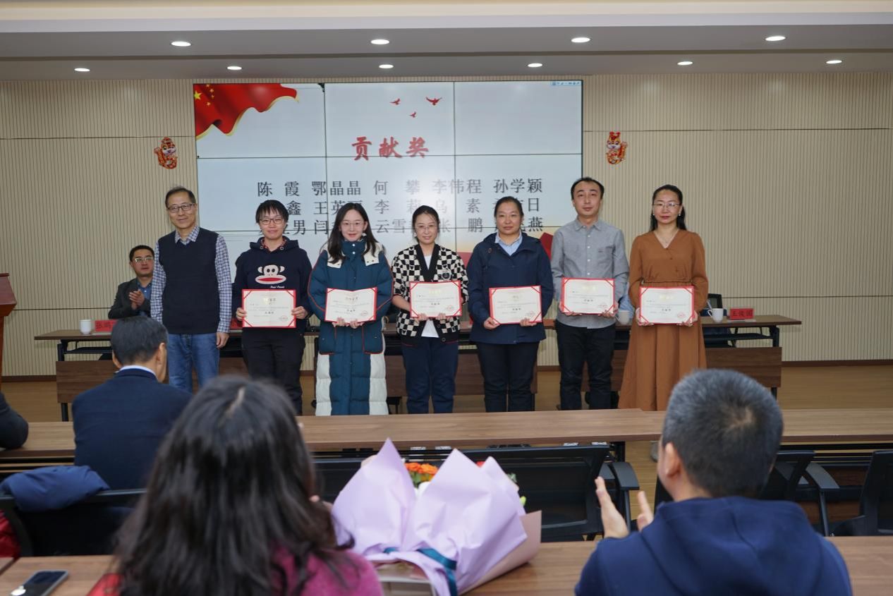 大会的最后环节是颁发年度工作先进奖和审核评估贡献奖。张和平、张文羿、云雪艳获科研工作先进个人,段艳、王英丽、张鹏获得教学工作先进个人;李畅、萨如拉、王彩霞获得管理工作先进个人,由孙志宏院长、张鹏飞书记和王俊国院长分别为先进个人颁奖。由张和平老师代表先进个人发言。另外,教育教学审核评估离不开学院老师们的大力支持,会议为审核评估工作做出贡献的教师颁发特别贡献奖和贡献奖。
