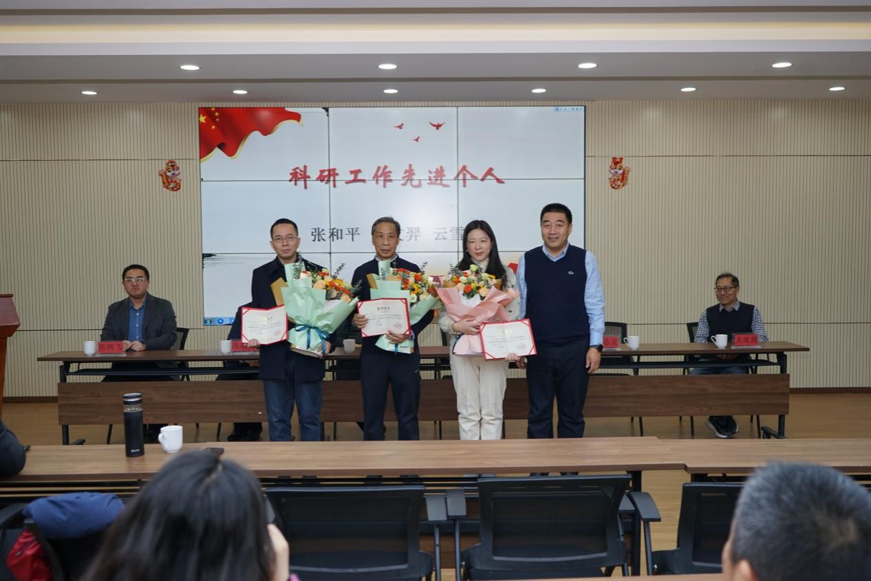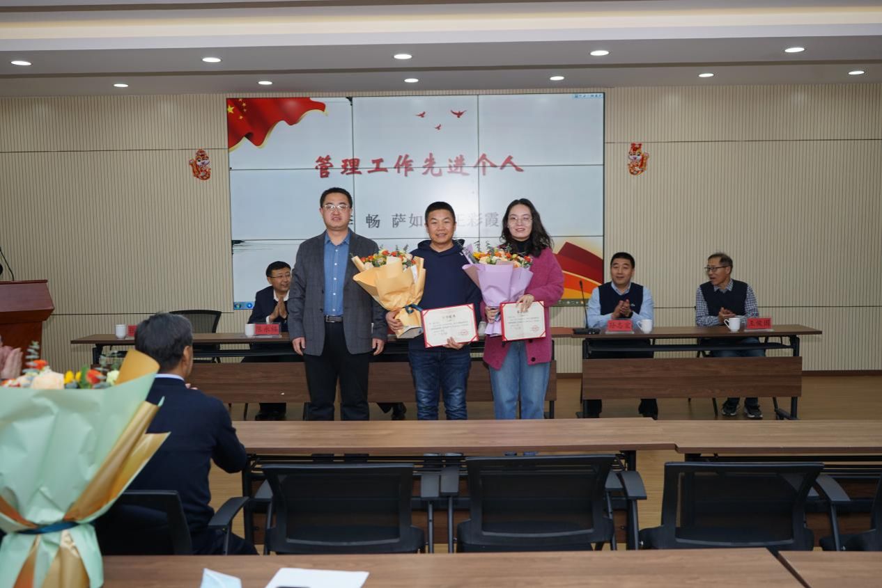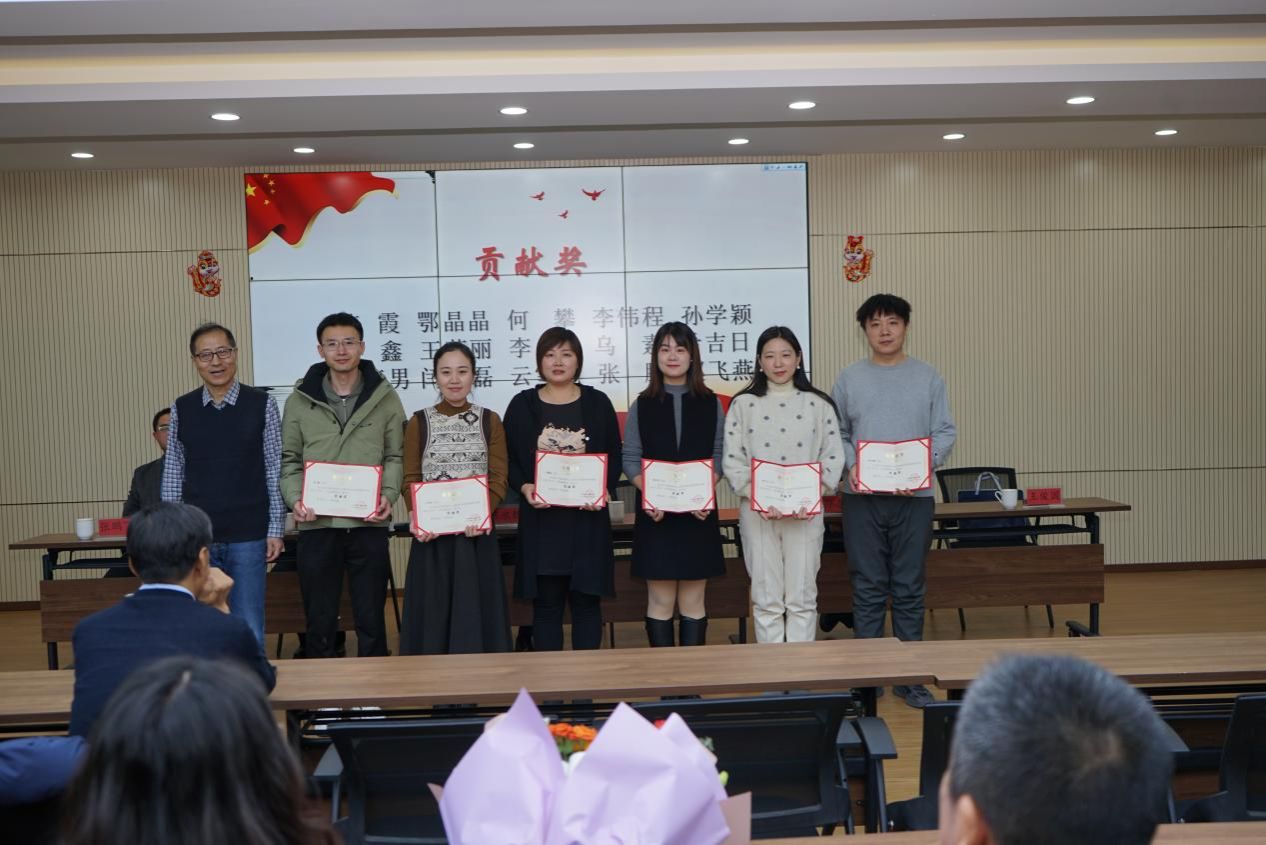 大会的最后环节是颁发年度工作先进奖和审核评估贡献奖。张和平、张文羿、云雪艳获科研工作先进个人,段艳、王英丽、张鹏获得教学工作先进个人;李畅、萨如拉、王彩霞获得管理工作先进个人,由孙志宏院长、张鹏飞书记和王俊国院长分别为先进个人颁奖。由张和平老师代表先进个人发言。另外,教育教学审核评估离不开学院老师们的大力支持,会议为审核评估工作做出贡献的教师颁发特别贡献奖和贡献奖。