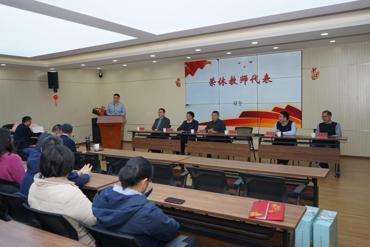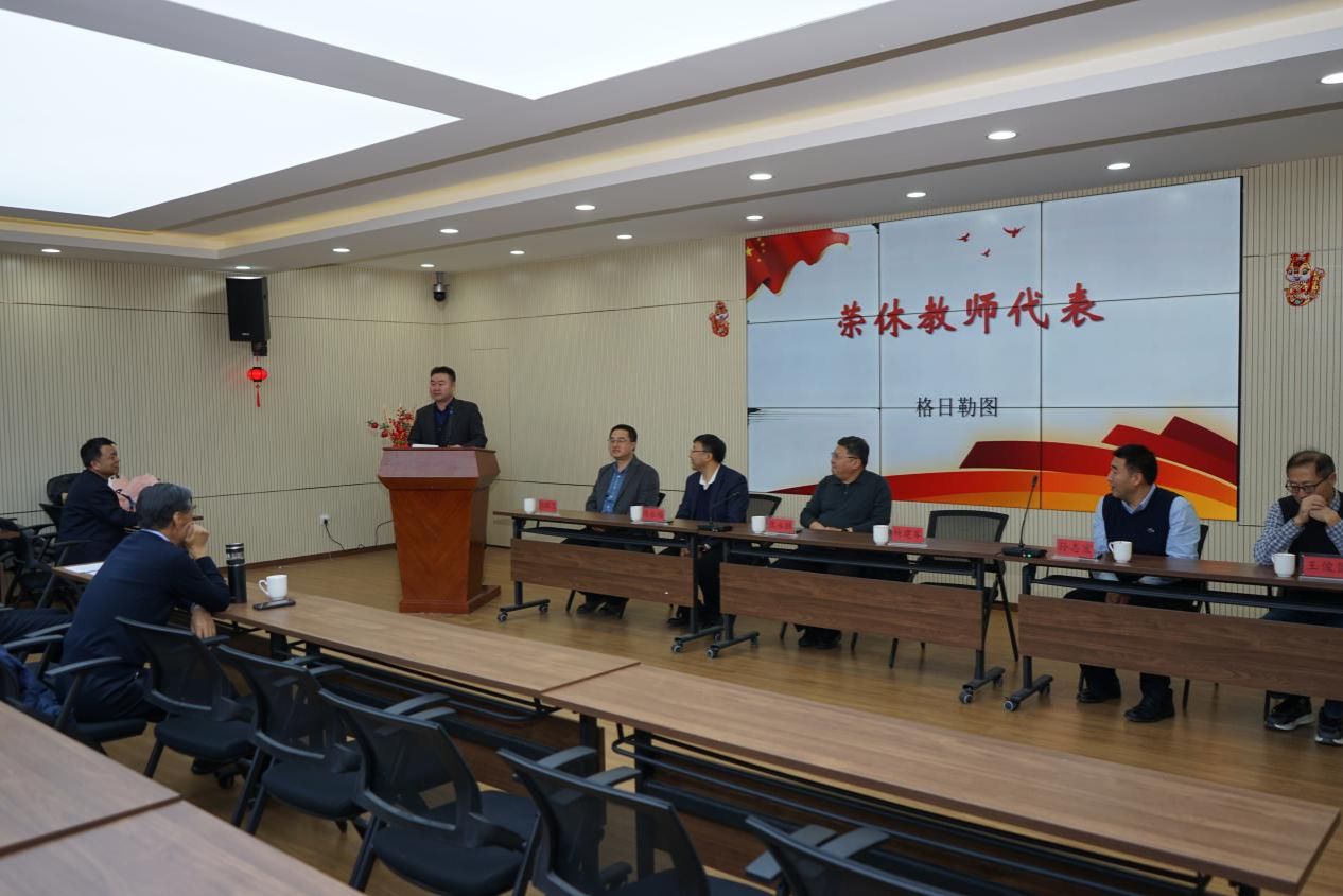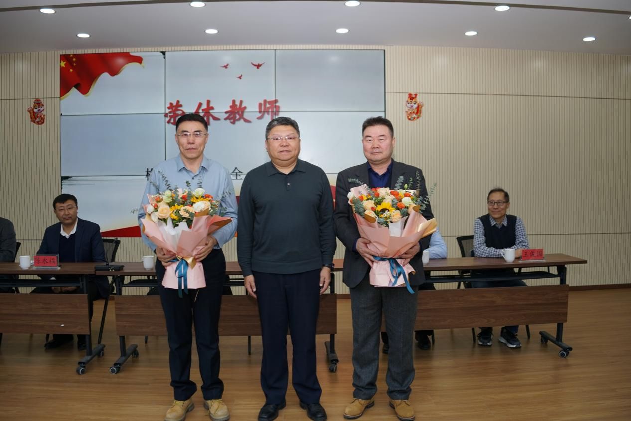 大会为双全、格日勒图和邢黎明老师举行了隆重的荣休仪式,并送上了诚挚的祝福与感谢。双老师和格老师在发言中深情回忆了在学院工作的点滴,勉励年轻教师继续传承学院优良传统,用青春与热忱开创更辉煌的未来。陈永胜书记为两位教授献上鲜花和纪念品,现场掌声经久不息。