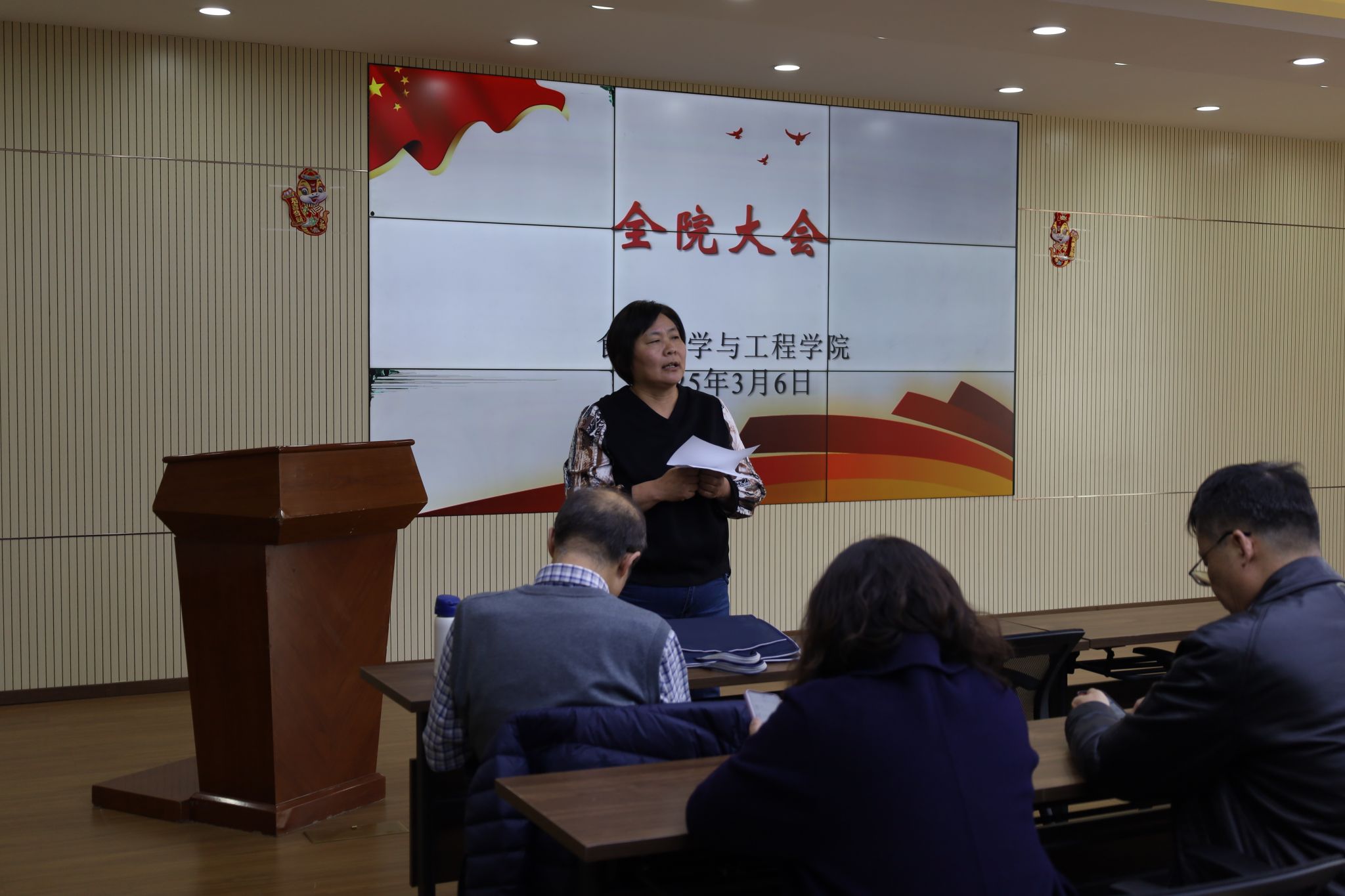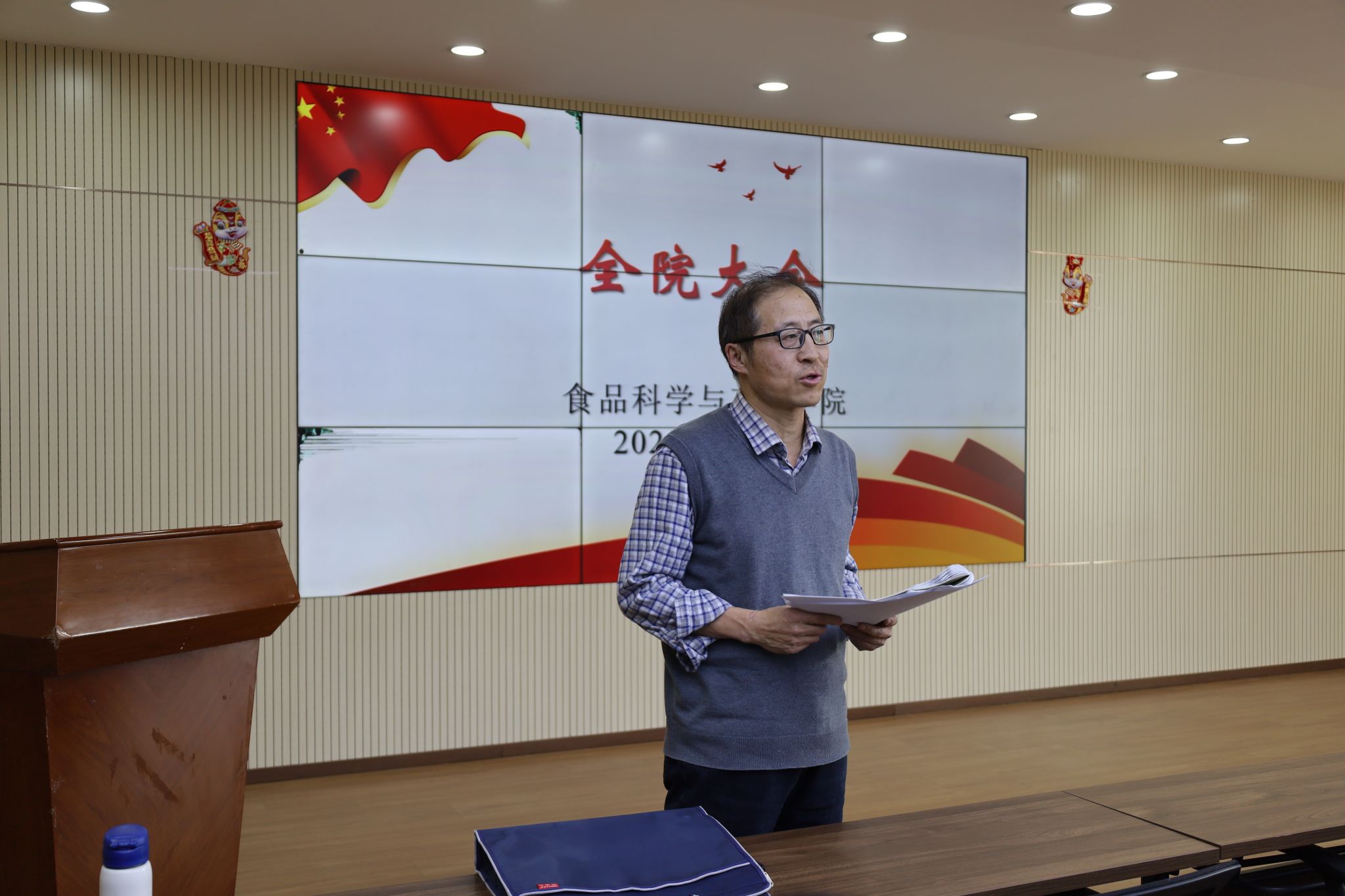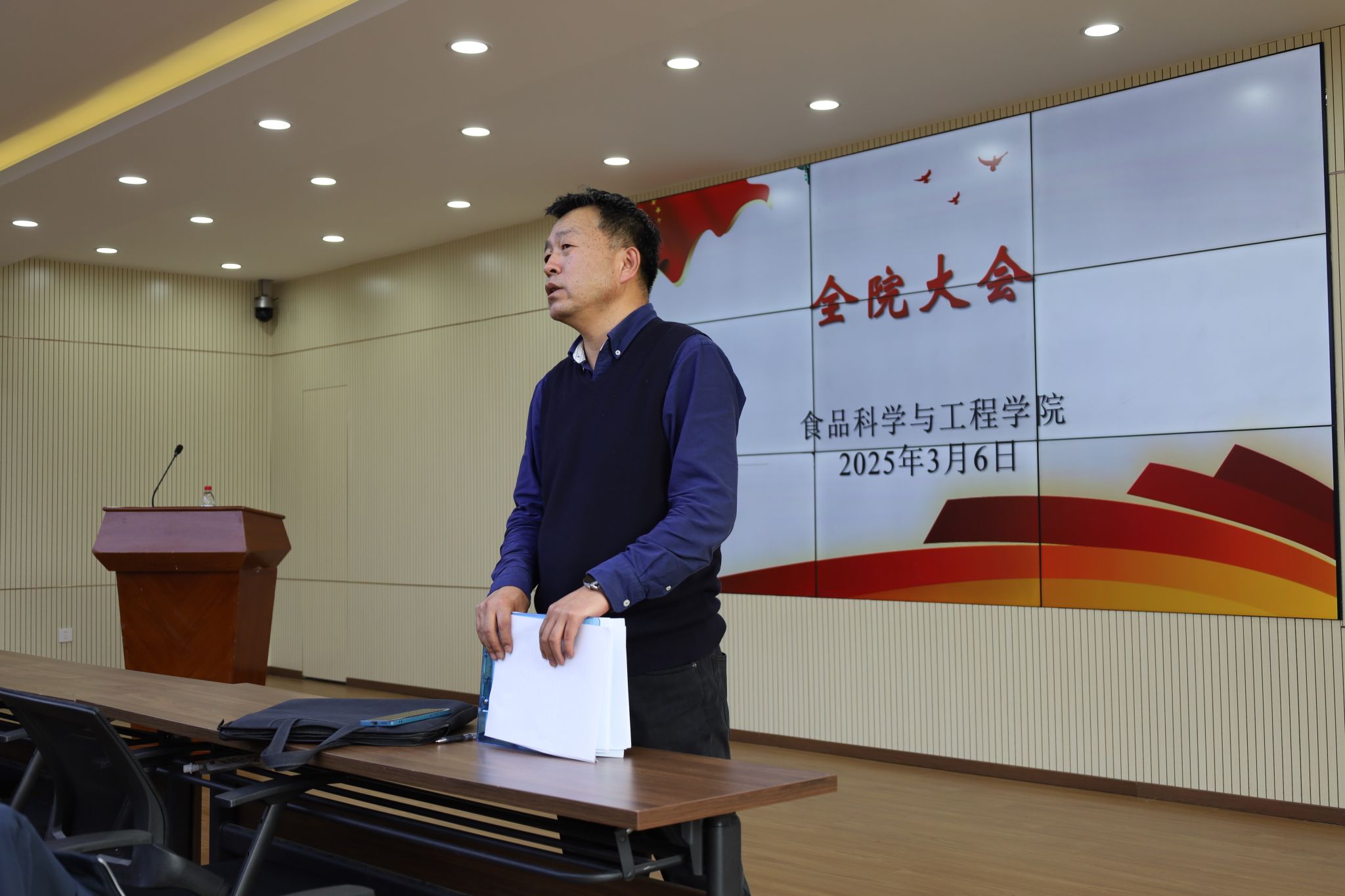3月6日下午,我院于乳品楼二楼会议室召开全院大会,全面部署学科建设、教学科研、学生管理以及师德师风等重点工作。会议由学院党委书记杨建军主持,学院领导班子成员及全体教职工参加会议。