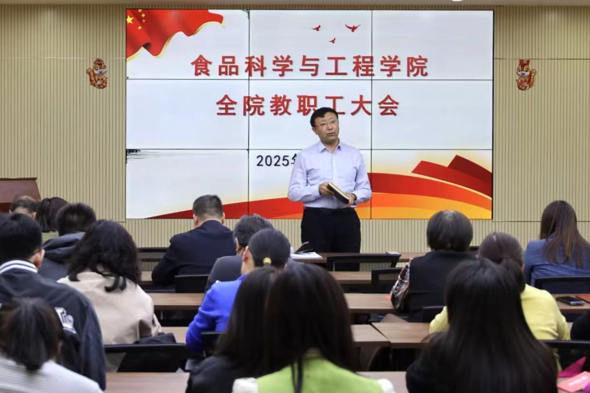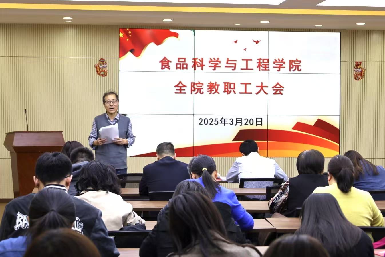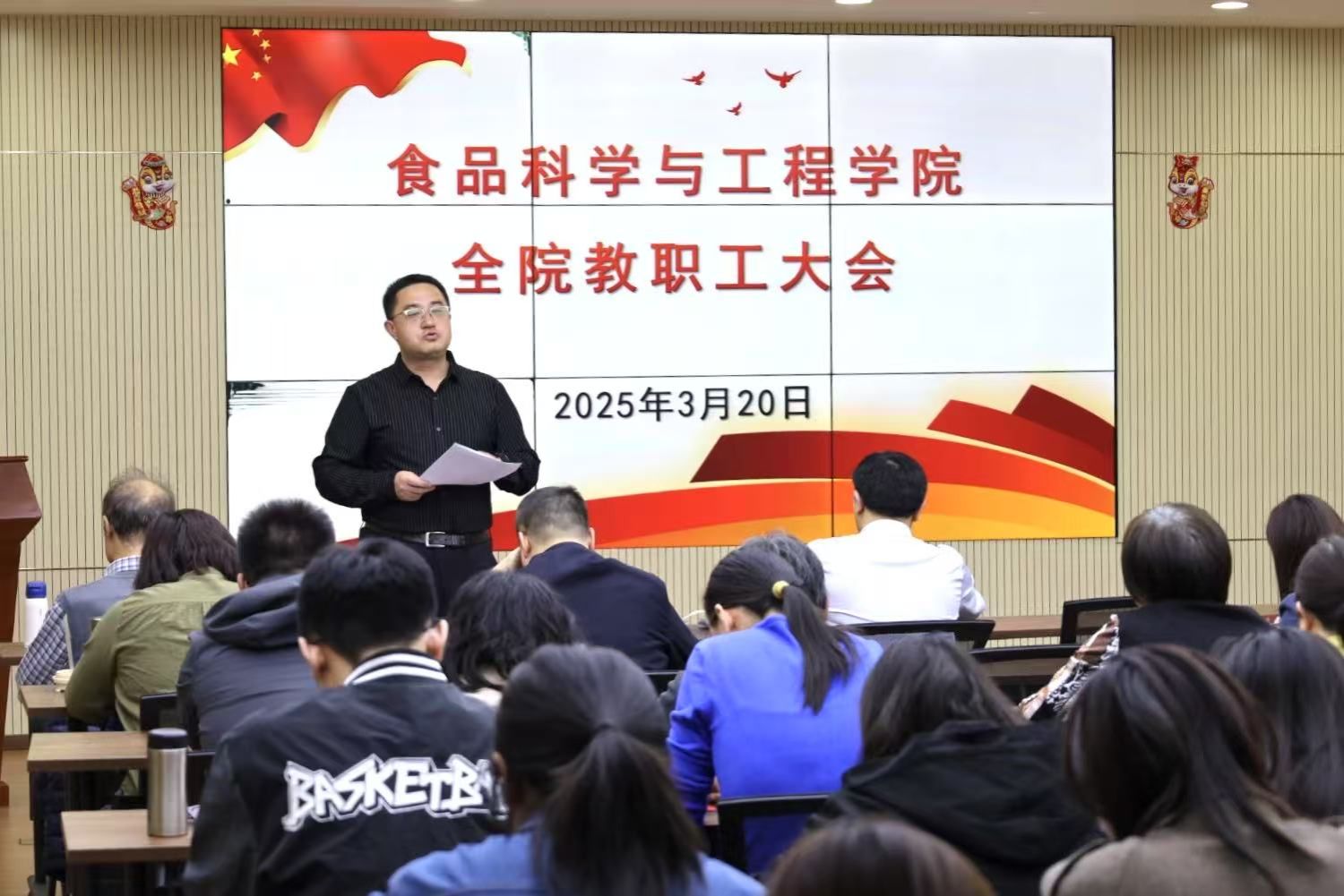 3月20日下午,我院于乳品楼二楼会议室召开全院大会,学院领导班子成员及全体教职工参加会议,学院党委书记杨建军主持会议。