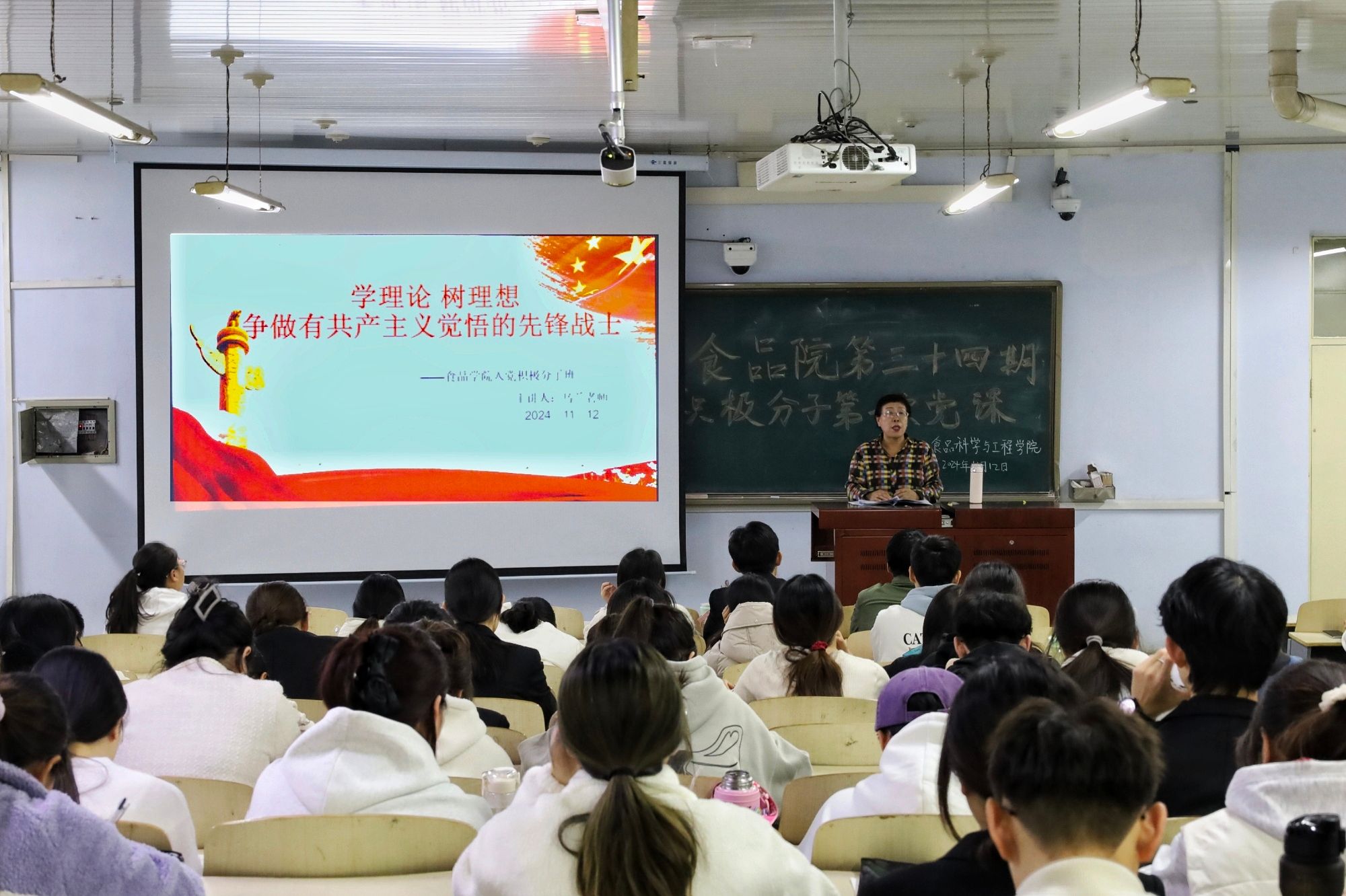 2024年11月12日19:00,学院分党校第三十四期入党积极分子第一次党课在博学楼307顺利开展。本次党课由现任内蒙古老教授报告团副团长、农大关工委报告团成员、我院关工委常务副主任乌兰老师主讲,第三十四期积极分子及学生党员服务站成员参加。
