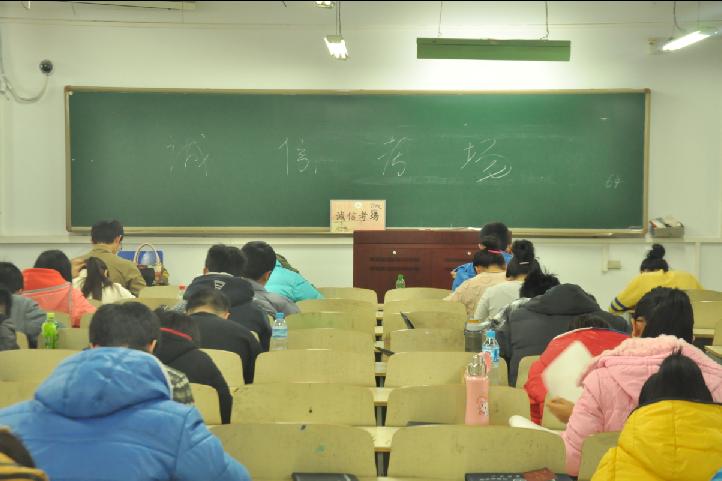 在近期进行的期末考试中,我院有90%以上的班级申报了“诚信考试荣誉班级”,95%以上的同学自愿申报参加诚信考试。同学们按照诚信考试承诺书中的要求,自觉维护考场纪律,佩戴“诚信考试卡”,所有考场秩序井然,没有出现任何违反考场纪律和作弊的行为。