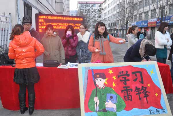 为了让广大青年学生学习和弘扬雷锋精神,3月5日下午4:00,我院在西区新教学楼505教室举行了“雷锋日”动员大会,与此同时在西区公寓区展开了“学习雷锋精神”的宣传活动。部分11级同学参加了此次活动。