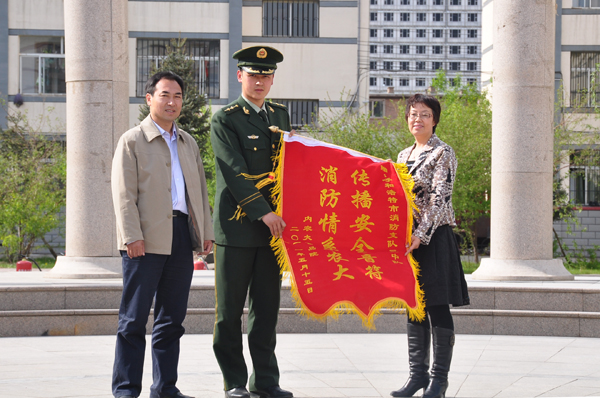 在活动的最后,我校学生处副处长乌力吉老师与伟德体育官网党委书记张星杰老师共同为呼和浩特市消防支队全体官兵授予了锦旗,对他们表示了崇高的敬意与真挚的感谢,希望他们在日后的工作中一如既往,坚持全心全意为人民服务的宗旨,努力为人民群众创造安全、和谐、稳定的环境。活动过后,现场嘉宾与同学们纷纷在活动横幅上签名留念。