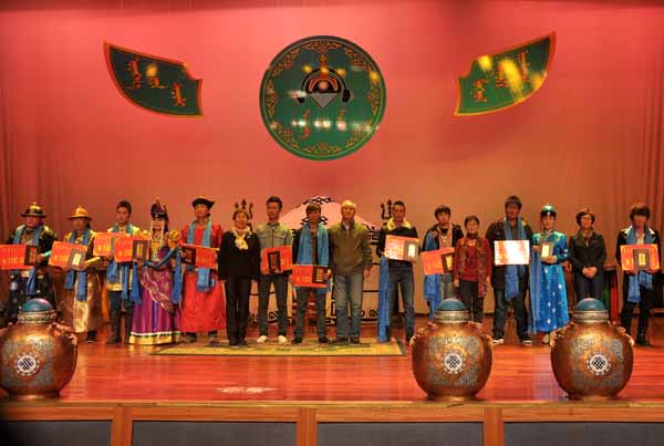 经过激烈的角逐,HB组合赢得了专业组的冠军,而和希格诺尔布夺得了非专业组的冠军。最后由评委老师颁发获奖证书,留念合影。至此,第三届大学生《心中的旋律》蒙语歌曲大赛决赛圆满落幕。