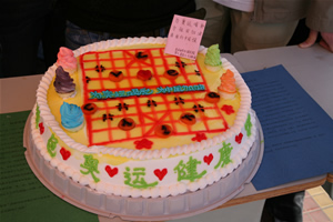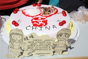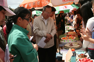 在随后的美食DIY大赛中,各班参赛选手带着他们突出“奥运主题”和“抗震救灾献爱心”主题的作品向全校师生展示了食品学子的风采。同学们的作品形式多样,寓意深刻,寄托了大家对奥运会的祝福和灾区人民的关心。在互动坏节中,同学们的蛋糕制作表演和食堂员工的厨艺展示精彩纷呈,赢得了观众的阵阵掌声。最终,07级食品安全二本一班的“爱心奥运”,06级食品安全一班的“五环相连,心手相牵”,07级食品一本二班的“五彩饭团”分别荣获学生组一、二、三等奖,雕刻精美的“西瓜钟”获得教工组一等奖。所有的获奖作品进行了现场拍卖,所得款项全部用于捐助灾区人民。