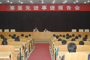 4月20日下午,我院邀请“草原的保尔”、“新时期的张海迪”寒星在新教学科技报告厅做了题为“让青春在生命中熠熠生辉”的报告,学院2007级项目班学生、入党积极分子和学生党员聆听了报告。