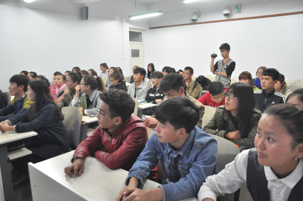 为了加强对社会主义核心价值观的认识,提高理论素养和实践能力,10月15日晚上7:00,我院2013级蒙一、蒙二班于我校勤学楼201教室开展了以宣传社会主义核心价值观为主题的系列团日活动之“青春和梦想,我们永担历史使命——老一辈的教诲和启发”座谈会,并有幸邀请到我院资深老教授德力格尔桑老师担任本次座谈会嘉宾。