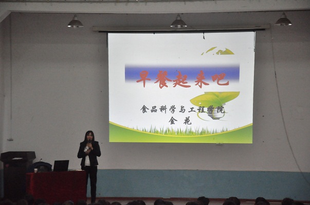 为增强学生体质,帮助大家树立合理膳食的意识,培养学生科学的营养观念和饮食习惯,不断提高学生健康水平,全面推进素质教育,11月7日晚上7:00,我院于西区旧报告厅开展了第十届“校园饮食文化节”系列活动之一“早餐起来吧”健康知识讲座。担任本次讲座讲师的是国家二级营养技师、日本千叶大学博士金花老师。我院团委书记斯日古冷与各年级同学一同聆听了本次讲座。