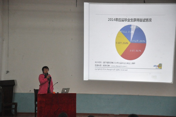 讲座开始之前,我院党委副书记向大家说明了本次讲座的重要性,并结合历年毕业生就业情况、近年就业形势和就业特点,动员全体毕业生利用好学校及家庭的资源,克服世俗的眼光,放宽视野,找到最合适的工作。邹爱婕老师结合自己从事十多年就业指导工作的经历和相关研究结果,从简历的制作、就业渠道的拓宽、面试注意事项等多个方面做了分析和指导。