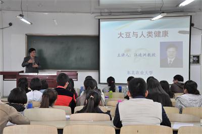 江连洲教授做了题为“大豆与人类的营养和健康”的专题讲座。围绕大豆的起源、品种与特性、各成分的营养价值与人体健康的关系进行了深入的分析。结合一些实例分析了人类生活离不开大豆的原因及大豆中各成分对多种疾病的预防作用。