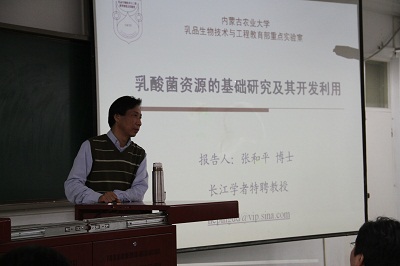 张和平教授做了题为“乳酸菌资源及其利用”的专题讲座。为同学们详细介绍了乳酸菌的开发及乳品生物技术在食品领域中的应用。除向大家传授有关乳酸菌的基础知识以外,还凭借自己在食品领域的经验和丰富的阅历,给同学们分析了许多食品方面的实际操作的案例,并以自己学生时代的亲身经历鼓励和劝导大家努力学习专业知识。
