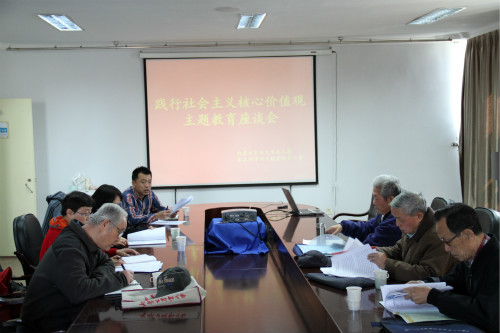 学院关工委会议结束后,各位老师与学院16名学生代表进行了践行社会主义核心价值观主题教育座谈会。会上同学们从自身出发,结合自己的认识,积极踊跃发言,就“社会主义核心价值观”谈出自己的理解与体会。同学的精彩发言赢得各位老师的认同与赞赏。最后,老先生们对大家的发言进行了总结,并希望青年学生以此次座谈会为契机,用实际行动带动身边更多的人践行社会主义核心价值观。