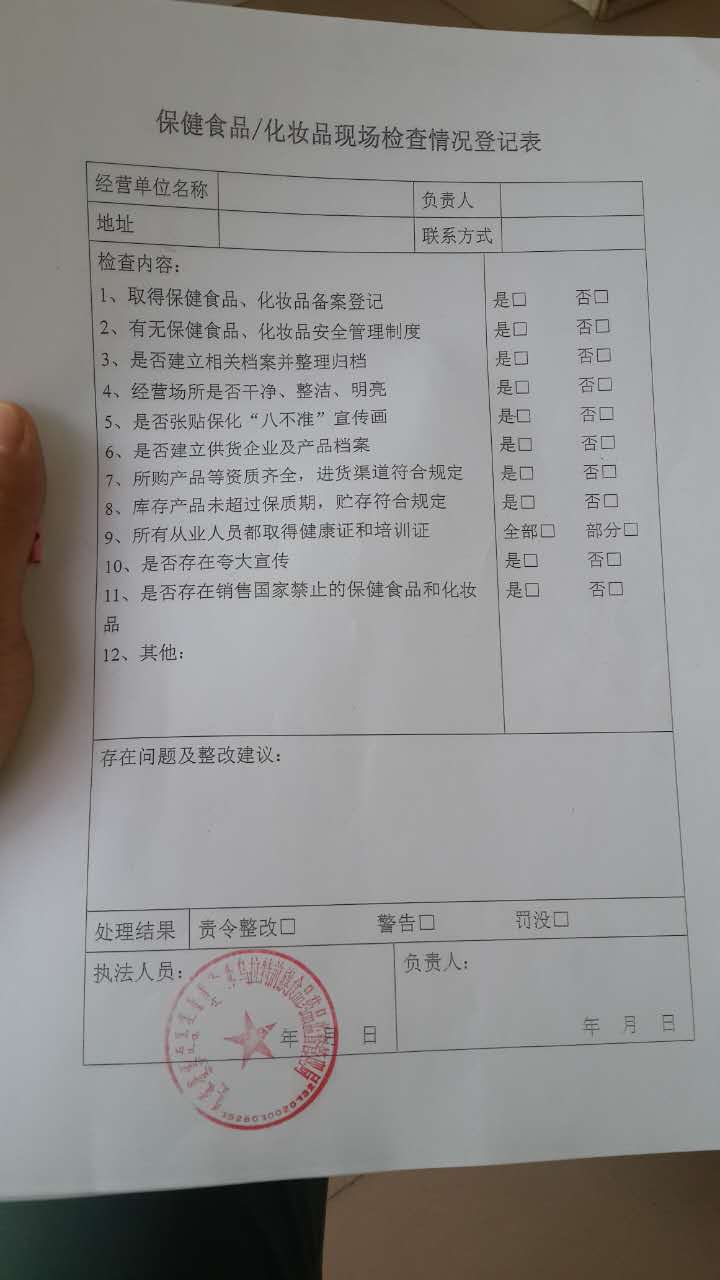 下午3:00,调换岗位后的雒帅同学跟随保化监管的负责人罗主任与郭主任去往乌拉山镇各个化妆品店与婴儿用品店进行检查。每到一家店铺,执法人员便要求该店出示卫生许可证、商品生产厂家资料、商品批次检验报告、特殊化妆品批号等书面材料。执法工作人员十分专业,执法要求十分严格。在雒帅与郭主任的交谈过程中,郭主任提到,乌拉特前旗共有800多家化妆品、保健品、婴儿用品店,食药局共有3名工作人员进行监管,主要目的就是规范保化产品市场,保证人民群众的利益。
