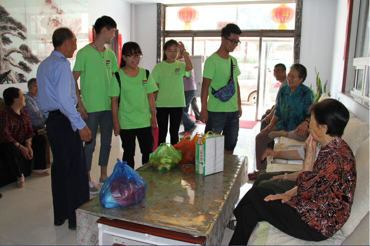 “尊老”是中华民族的传统美德,作为新世纪的大学生,更有责任和义务发扬这一美德。为了提高和培养大学生的社会实践能力和社会公德意识,了解老人的生活、给他们带来欢乐,四子王旗食药局小分队在实习之余,为博雅园公寓的老人送去慰问。队员张宇、姬彩霞、哈斯巴日苏、白佳鑫、霍玉亮,张霞和吕瑞瑞带着自己诚挚的心以及购买的新鲜蔬菜、水果和牛奶等物品于上午9:30走进了老年公寓,一起感受这里的温情。
