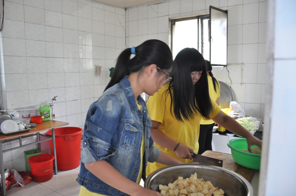 第二天6:00左右,队员们又来到了后厨帮忙。大家不但帮助阿姨热菜、熬粥、盛菜,还在所有人用完早餐后,收拾碗筷、清理桌面、扫地,拖地。帮厨期间团队成员与阿姨相处融洽,空闲时间陪阿姨聊天,打扫厨房。队员们与这里的工作人员相处地非常开心,已然非常适应这里的环境。在紧张地实习工作之余,更是平添一份自在。