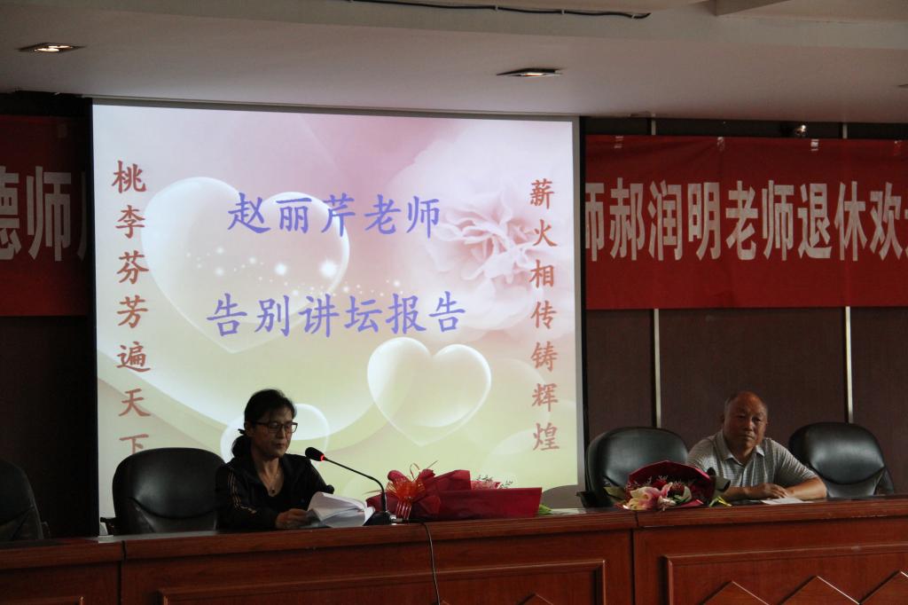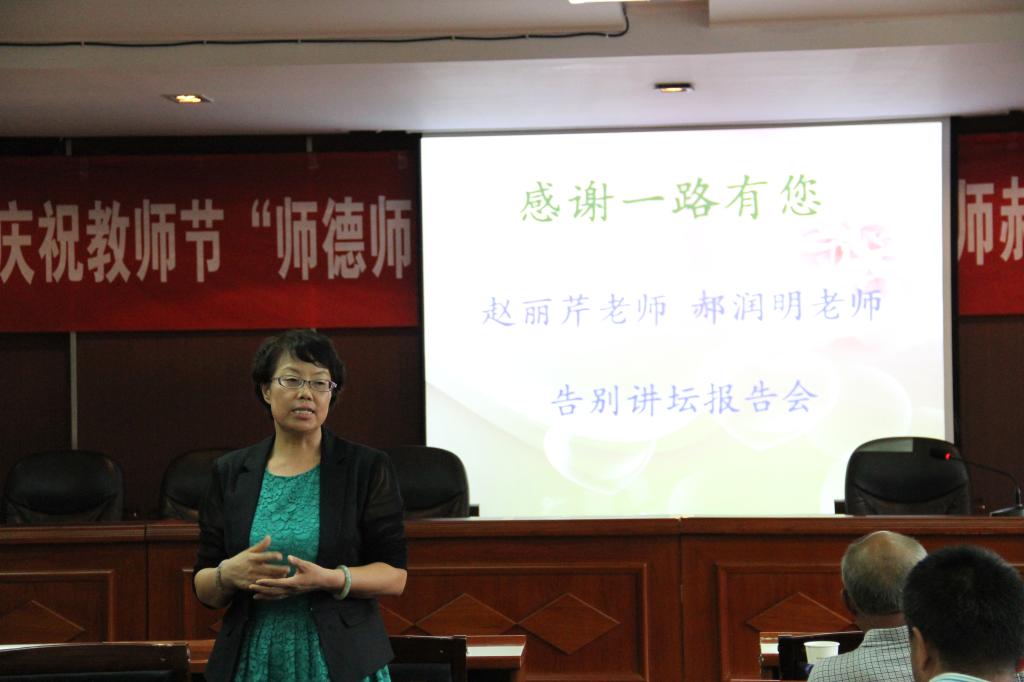 接着,由退休教师赵丽芹和郝润明分别作告别讲坛报告。赵丽芹老师分享了自己如何从一个刚毕业的无名小卒成长为食品届的知名人士,为食品学院的发展做出了巨大努力。郝润明老师讲述了自己丰富的工作经历,以过来人的身份,分享了如何与领导沟通、如何当好班主任、当好家长等宝贵经验。