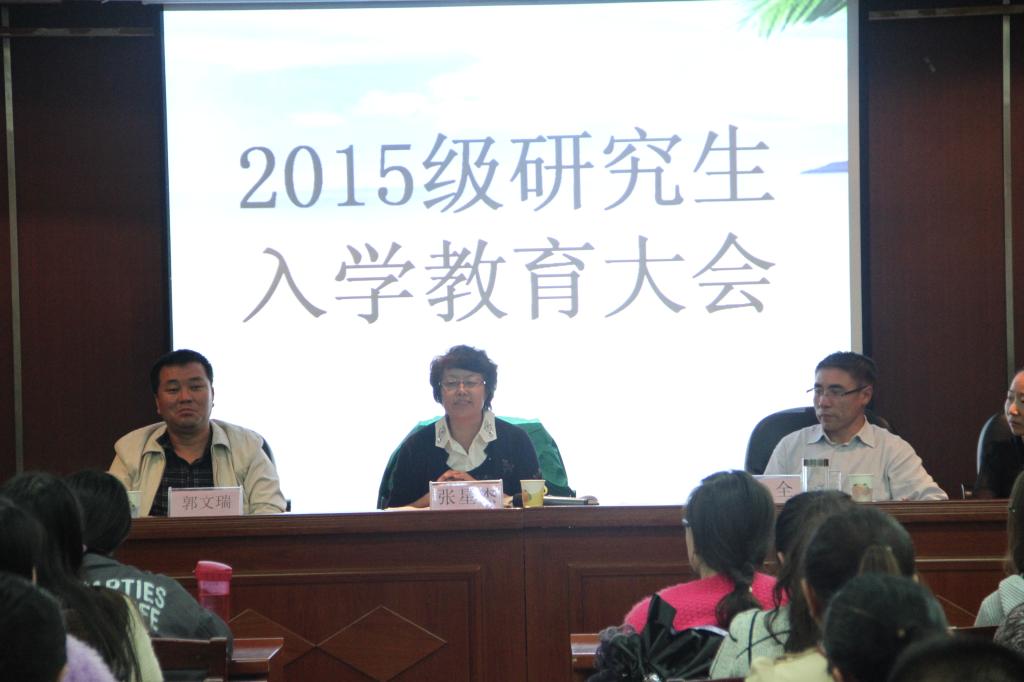 研究生院副院长郭文瑞向同学们简单介绍了我校研究生教育的概况和历史,提出研究生应当珍惜时光,努力奋斗,要处理好人际关系。同时也介绍了学校奖助学金的情况,以此激励同学们努力奋斗。