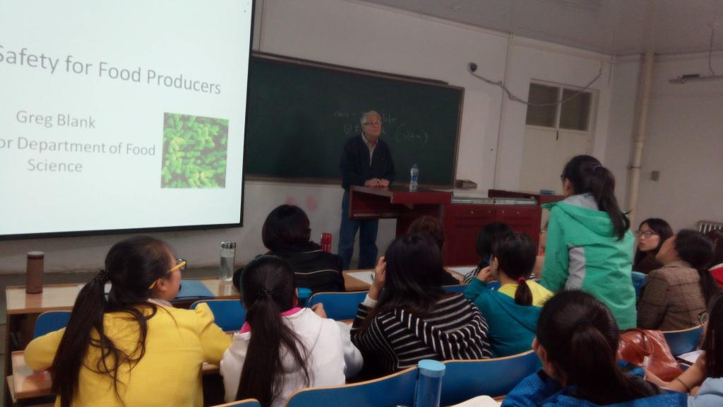 食品安全专题课程为期两周(10月15日-27日),由加拿大曼尼托巴大学农业与食品科学学院的Gregory Blank教授主讲,系统地讲解和介绍食源性疾病的防控、HACCP和GMP、饮水以及食物安全、食品微生物/芽孢污染及控制以及食品异物等内容。本次讲坛具体由食品学院郭军教授和陈霞副教授筹办实施。