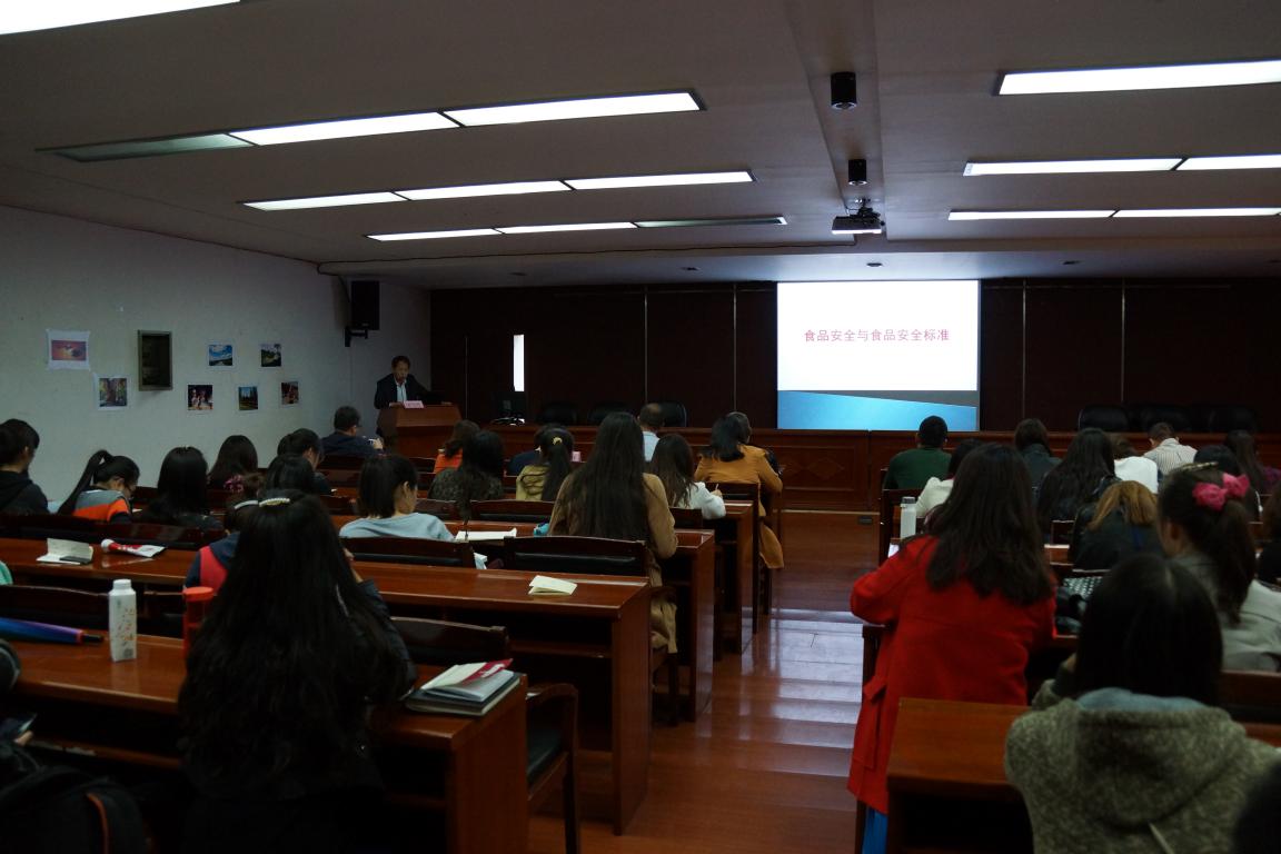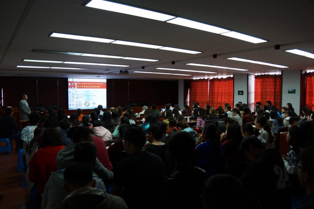 第一场讲座于10月21日上午在农大西区乳品楼进行,来自加拿大曼尼托巴大学的食品安全专家,Gregory Blank教授诙谐幽默地介绍了加拿大食品安全问题,剖析了近年加拿大和美国主要食源性疾病(Food borne decease,FBI)和死亡案例发生的原因,并对FBI防控措施提出了建设性建议;自治区食药局科技标准处郝宁副处长系统解析了我国食品安全标准体系现状和发展,同与会人员进行了交流。内蒙古农大师生、自治区食药局和一些食品企业管理和技术人员130余人参加了本次讲座。第二场讲座于10月28日进行,将邀请伊利集团质量管理部技术经理万鹏先生,结合乳品生产实际讲解“食品(乳品)安全风险防控体系”,郭军教授介绍了“食品化合物污染的致突变性评价技术进展”。