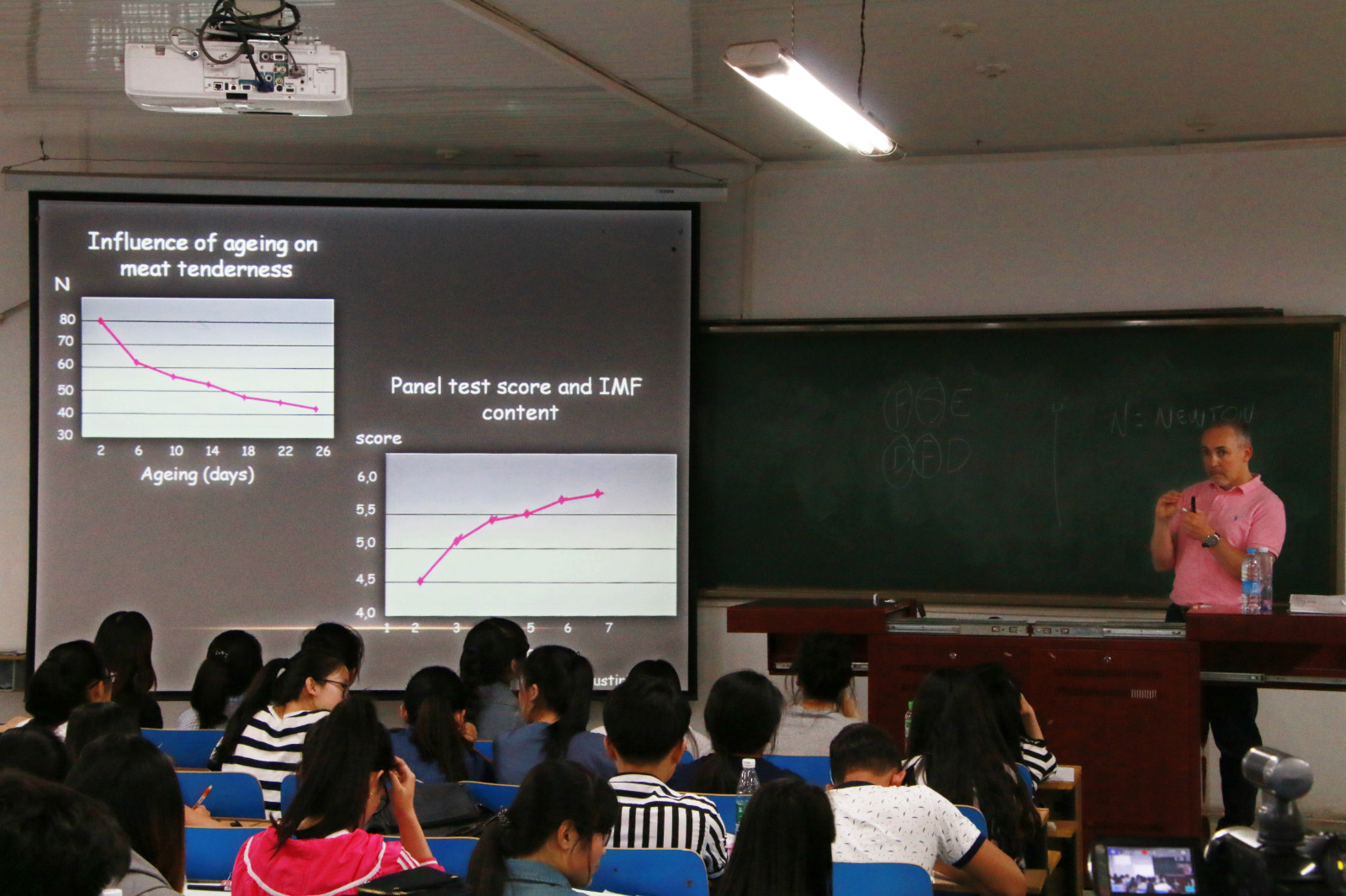 6月13日到21日,加拿大农业与食品部奶牛与生猪研究发展中心首席动物福利科学家、加拿大动物科学协会执行委员会科学奖委员会主席、加拿大肉类科学科学系会执行委员会促进和成员委员会主席、意大利动物生产协会会员,动物科学系列国际论坛会员Luigi Faucitano教授为我院14级本科生教授为期一周的肉品科学课程。