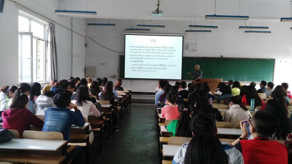 Gregory Blank教授是我校伟德体育官网的老朋友,年近古稀不辞辛苦来到中国,为我院师生传递国际最新的食品学术动态。此次讲座,Gregory Blank教授从食品溯源系统建立的背景意义、实施过程和具体案例入手,结合全球贸易、中国2015年颁布的食品安全新法和北美的食品安全法规以及国内外典型食品安全事件为大家做了详细讲解。Gregory Blank教授诙谐幽默,语言通俗易懂,与大家积极互动用简单的英语把原本专业、晦涩的知识讲的深入浅出,激发了师生们的听课激情,课后老师学生们纷纷与Gregory Blank教授进行交流并得到热情的解答。