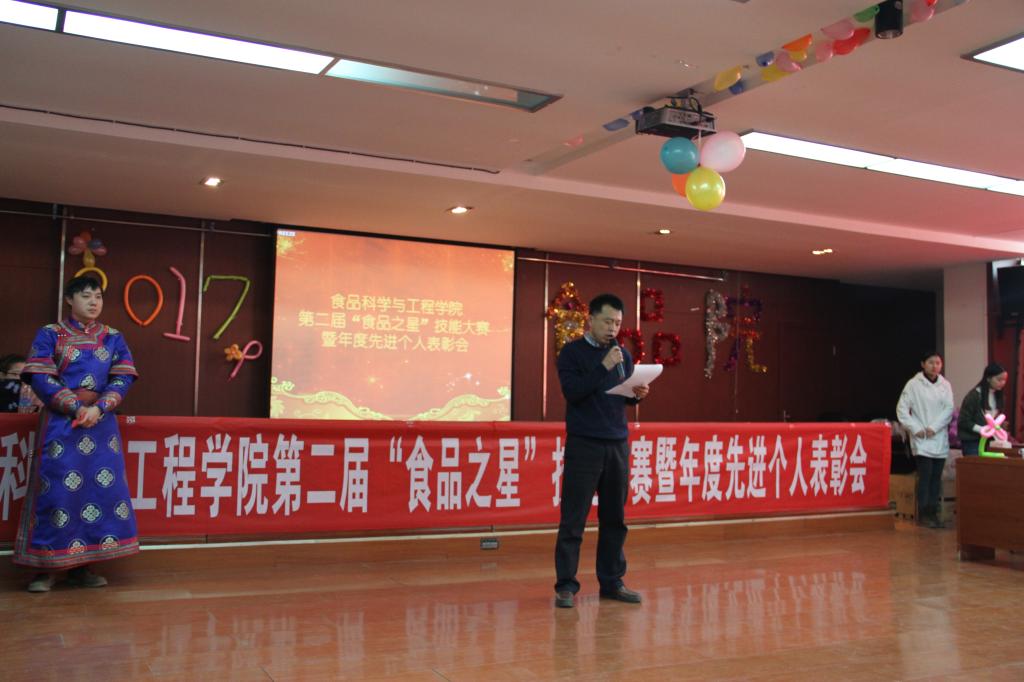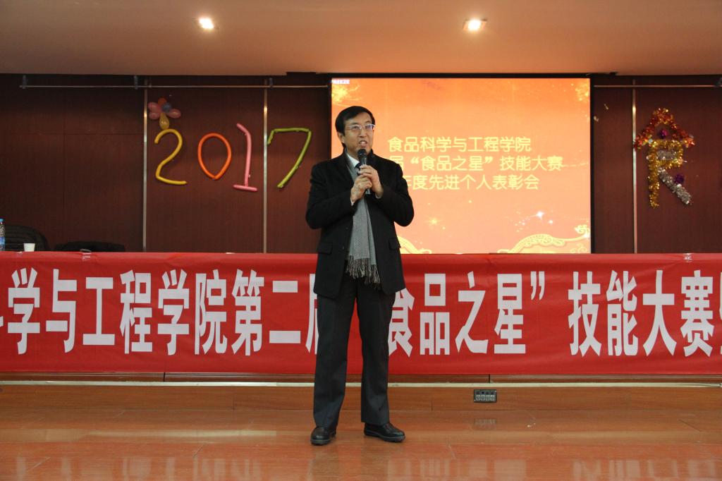 12月30日下午,我院在乳研楼二楼会议室举办了第二届“食品之星”技能大赛暨2016年度先进个人表彰会。本次活动由学院工会组织,全院教职员工参加了活动。副校长李金泉老师光临现场并向全院教职工致以节日的问候。