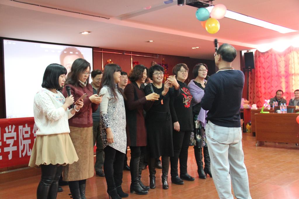 此后教职工们各显其能,表演了丰富多彩的节目,将个人才艺尽情展示在大家面前。节目形式包括合唱、独唱、吉他弹唱、相声等。一个又一个节目把活动现场的气氛一次又一次推向了高潮。节目表演的间隙工会组织全院教职员工进行了一系列的游戏活动,活动现场气氛热烈,欢笑、笑声如潮。