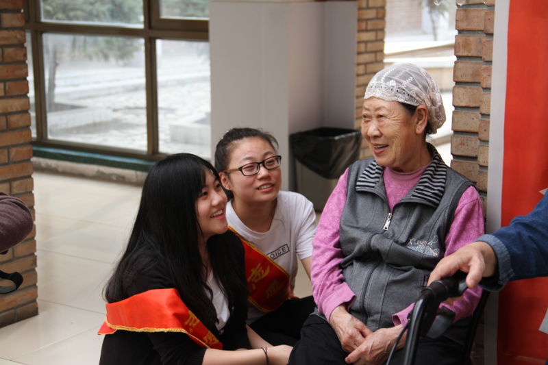 志愿者分为若干个小组,各有分工。有的到老人身边,陪老人谈天说笑,唠家常,讲讲养生小知识;有的给老人们带去欢笑和快乐;有的帮助工作人员整理房间、打扫卫生,为工作人员减轻负担。同学们都觉得通过这次活动,不仅开阔了自己的眼界,同时也让受到不一样的教育。同学们还特意为老人准备了丰富多彩的节目,虽然节目简单朴素,但是赢得了老人们会心的微笑和热烈的掌声。