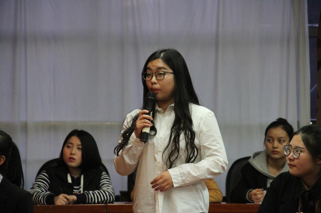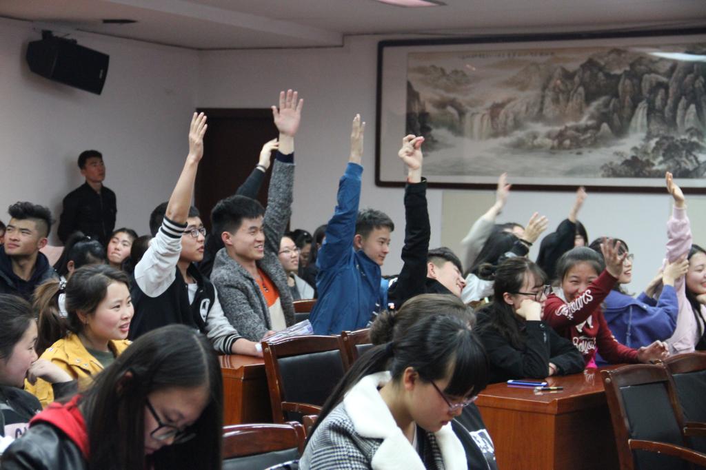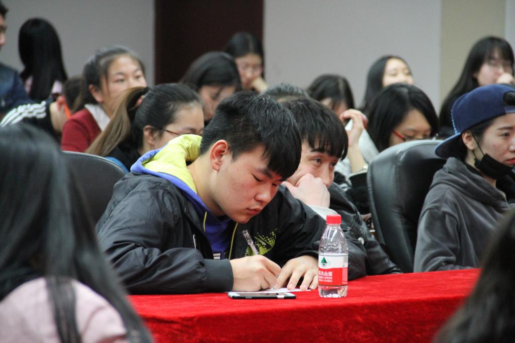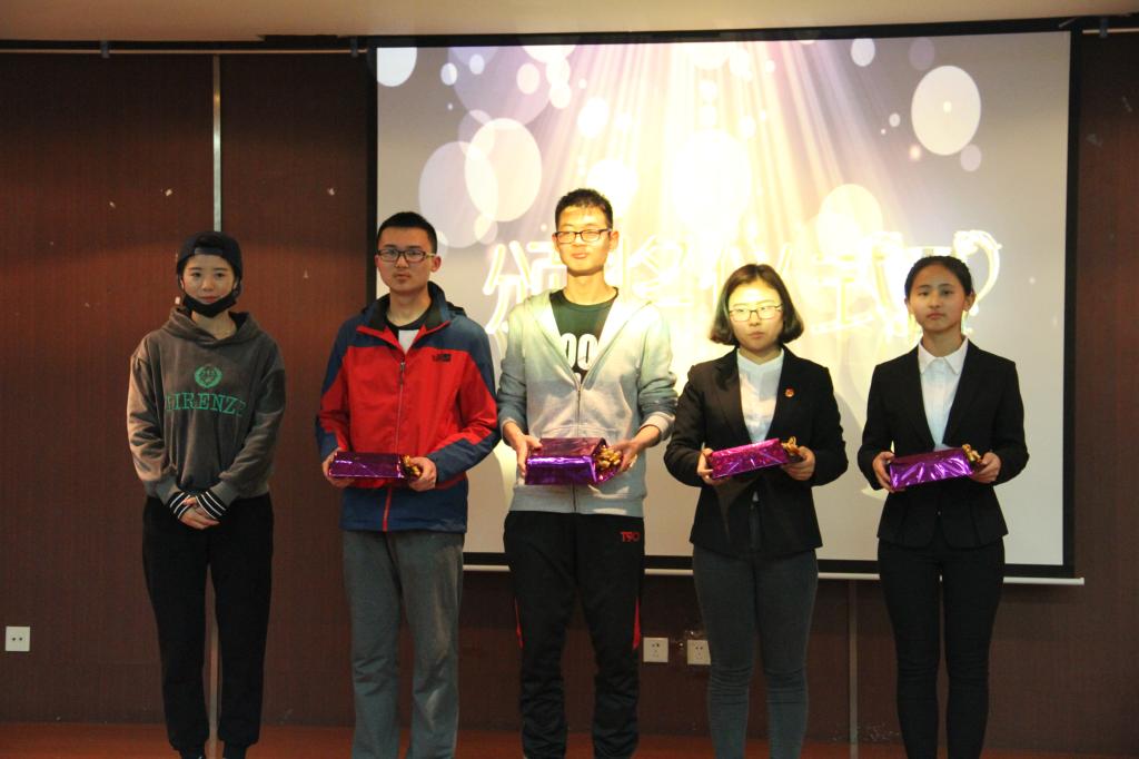 本次决赛由上下两半场组成,分别是个人赛和团体赛。在个人赛中,由八位得分较高的选手进行晋级和争夺冠军,从选手的抢答中可以看出他们的胸有成竹。激烈的个人赛后,相声《咱爷爷》使大家紧绷的心松了下来,让现场的同学捧腹阵阵,缓解了现场紧张的气氛。接下来就是考验大家默契的团体赛了,选手们也不负众望,大家配合默契,比赛现场掀起高潮。为了让观众也积极参与到竞赛中来,比赛还特别准备了互动环节。活动最后,由李海丽,秦璞为获奖者颁奖并合影留念。