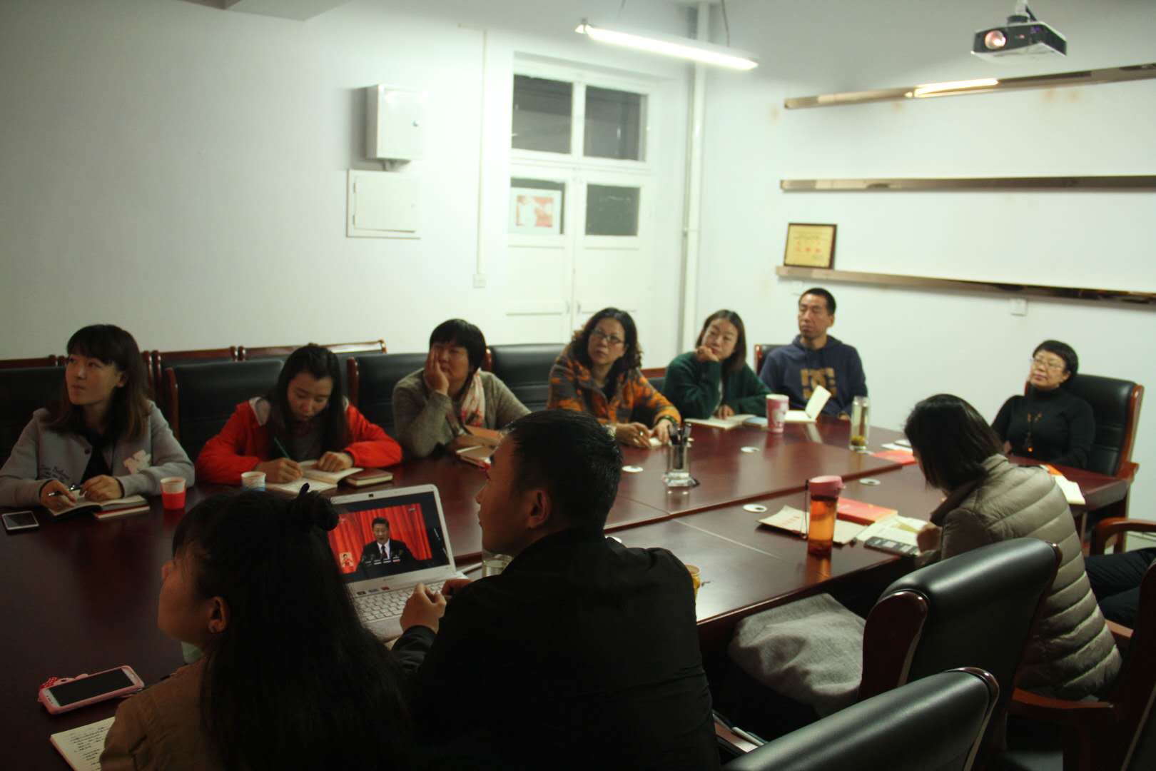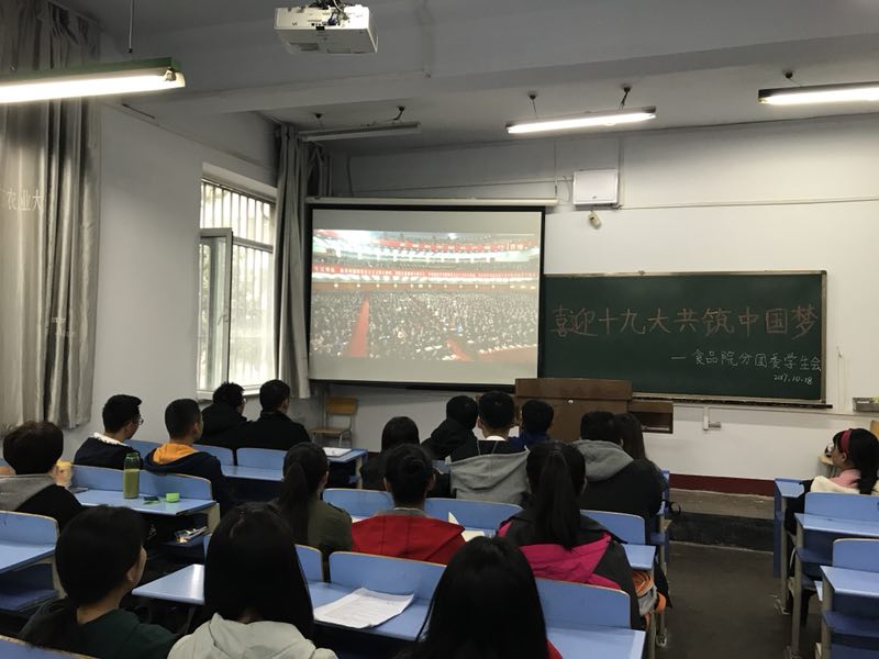 在我院会议室、学院实验室、乳品楼大厅、东附楼机房、博学楼教室以及学生宿舍,我院师生认真聆听会议内容,学习大会精神。通过认真观看习近平总书记代表十八届中央委员会向大会所做报告,大家认识到中国特色社会主义进入新时代,中国社会的主要矛盾已经转化为人民日益增长的美好生活需要和不平衡不充分的发展之间的矛盾。整个观看过程中,大家认真聆听并及时记录笔记,一直坚持学习到报告结束。