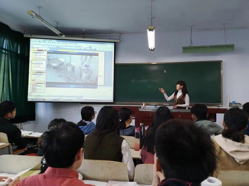 首先,陈老师为大家播放啤酒麦汁制备的视频并带领同学们回顾上节课所学过的内容,通过提问的方式强调关键步骤,突出了制备细节。随后,她为同学详细讲解了发酵的代谢途径以及发酵工艺。在讲解过程中陈老师用板书的形式为大家梳理知识,并在讲述新知识的同时提问同学们之前学过的相关内容。她提醒大家要将知识连贯起来,要有整体意识。课堂上,同学们认真思考老师所提出的问题,紧跟老师的步伐,营造了良好的课堂氛围。