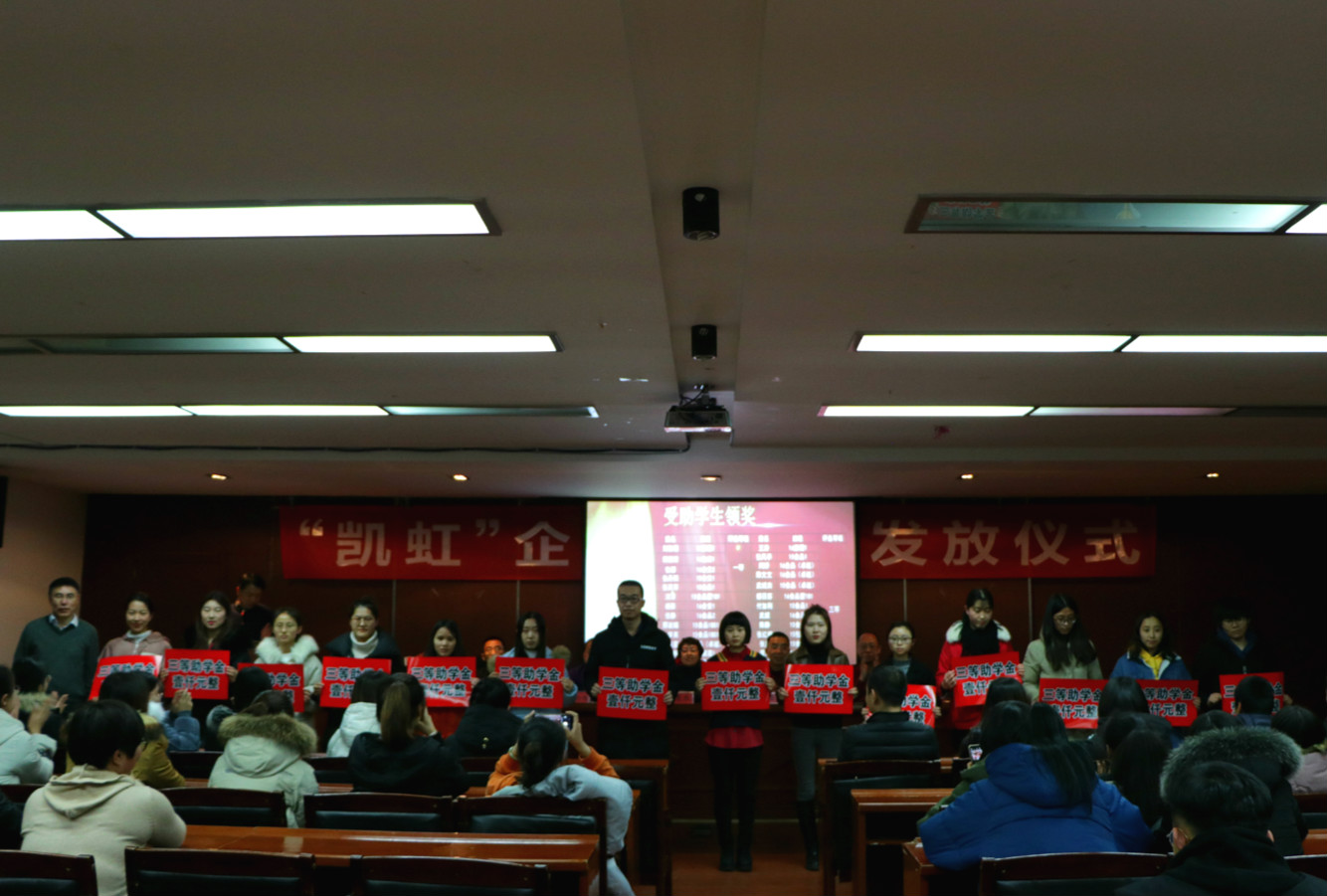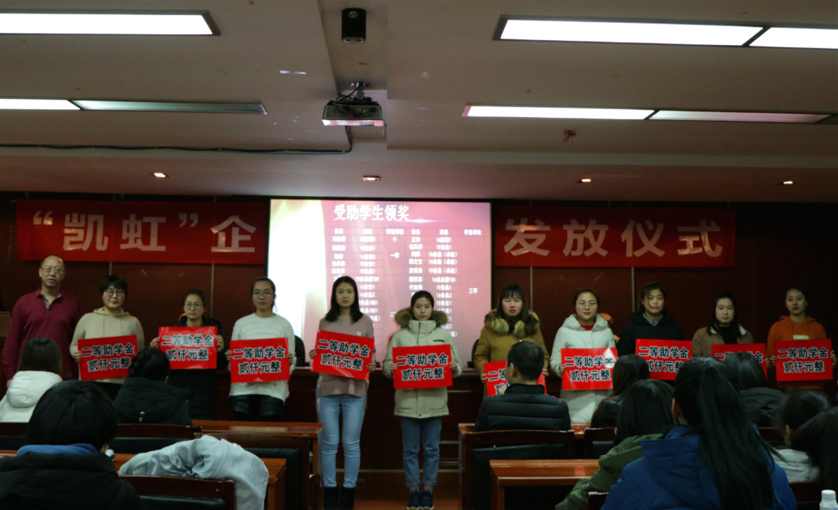 “凯虹成长”企业助学金是广州市凯虹香精香料有限公司面向我院学生专项设立的,每年资助5万元已连续6年支持和奖励我院家庭经济困难、勤奋学习、自强不息、为学院做出贡献和争得荣誉的学生。