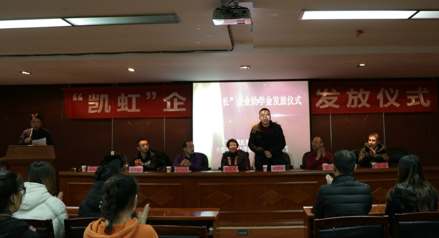 副院长董同力嘎宣读表彰决定,共有29名同学获得助学金。其中,5名同学获得一等助学金,每人3000元;10名同学获得二等助学金,每人2000元;14名同学获得三等助学金,每人1000元。二等助学金获得者胡佳星代表受助同学发言,表达了同学们对学校及企业的感激之情,表示将用自己的实际行动,刻苦努力学习,以优异的成绩回报学校、企业和社会。桂学文副总经理代表企业讲话,他说:“也许企业的助学金并不是很多,甚至是杯水车薪,但这是一种鼓励,是一份期望。同学们要常怀感恩之心,感恩父母的养育,老师的殷切教导,亲朋好友及社会各界的帮助。把它化为自己在求学道路上勇往直前的动力,以实际行动为国家和社会做出应有的贡献。”