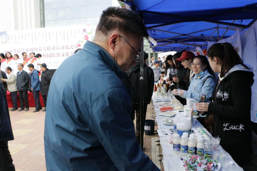 5月12日上午,由校党委宣传部、团委、内蒙古营养学会主办,伟德体育官网和饮食服务中心承办,内蒙古人民医院、内蒙古疾病预防控制中心、内蒙古妇幼保健院、呼和浩特市疾病预防控制中心、内蒙古预防医学会、包头医学院 、包头保健营养美食学会及营养学会其他团队共同协办的2019全民营养周内蒙古联动启动仪式暨内蒙古农业大学第13届校园饮食文化节开幕式在西区桃园餐厅广场举行。内蒙古自治区卫生与健康委员会疾控处处长蓝峰、内蒙古自治区科学技术协会学会部部长刘卫江、内蒙古自治区疾病综合防控中心慢病研究所所长夏亚娟、内蒙古自治区疾病综合防控中心公共卫生所副所长高昇、内蒙古蒙牛集团研发中心、第十三届全国人大代表研发工程师史玉东、内蒙古自治区人民医院临床营养中心主任郭瑞芳、内蒙古妇幼保健院主任杨缨、呼和浩特市疾病预防控制中心主任徐能智、校关心下一代工作委员会副主任高潮、校党委宣传部部长王忠东、校团委书记李伟威、校学生工作处处长韩瑞平、校后勤总支书记王平平、校后勤饮食服务中心经理陈立永、伟德体育官网党委书记郑培亮、伟德体育官网教授、内蒙古营养学会理事长郭军以及联动单位领导、专家以及学校相关职能处室的领导、老师和同学到场参加。