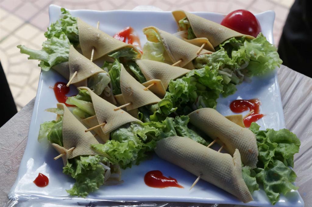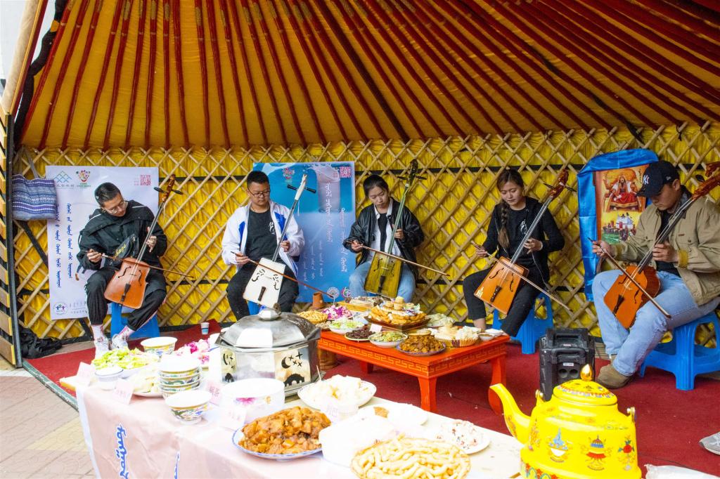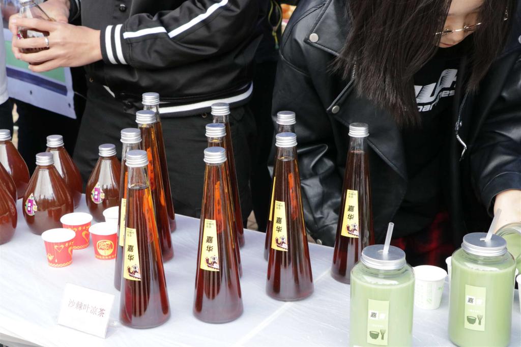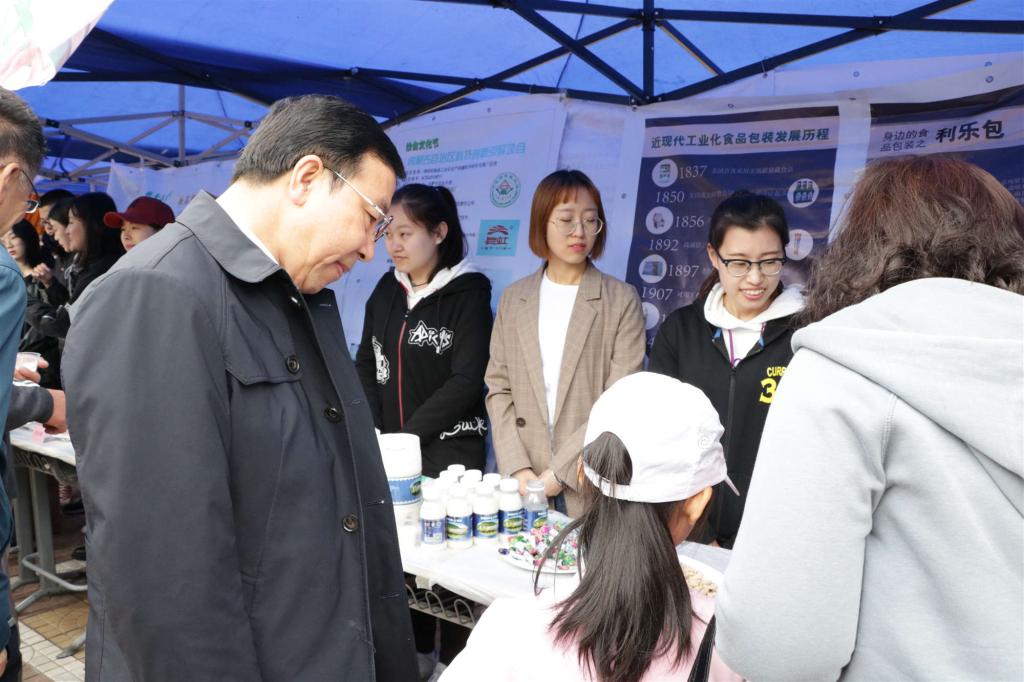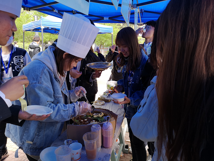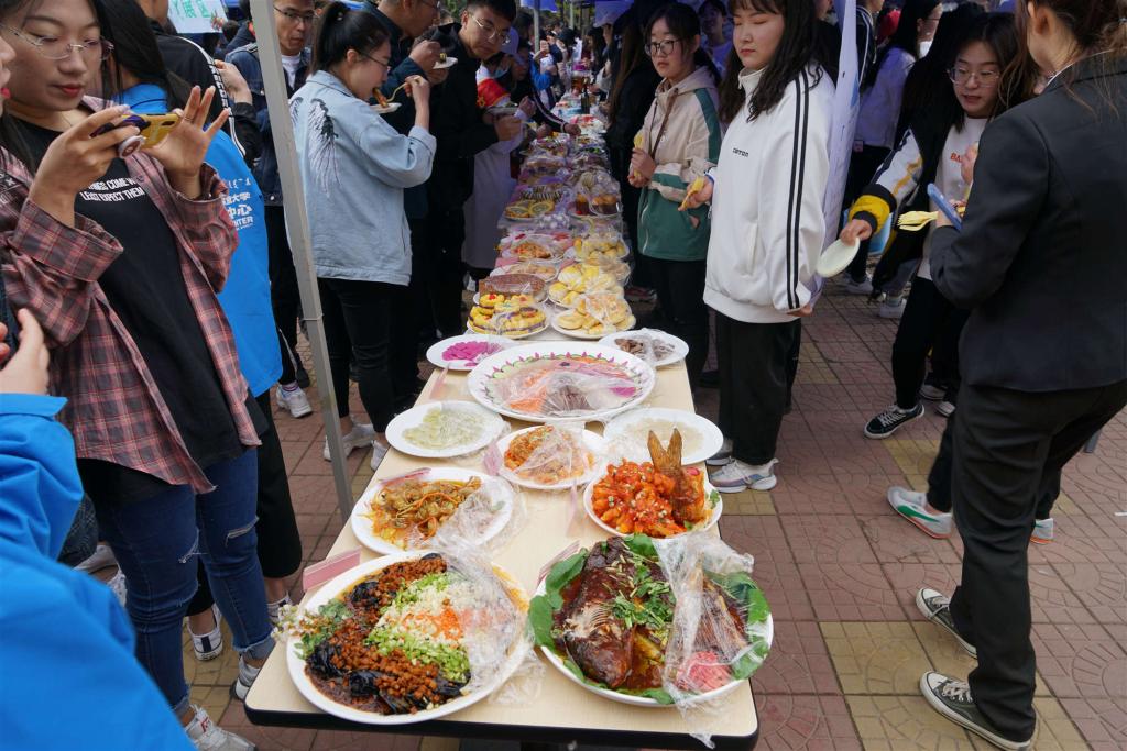 本届饮食文化节的学院专业特色展区中,摆放着本科生与研究生自主创新研发的肉质类、乳质类、饮料类以及食品包装等作品与材料,如酸马奶奶制品、全新无矾粉条、发酵肉、草莓脏脏茶等,体现了学院专业特色。在学院科技创新项目成果展区,野生蓝莓起泡酒、藜麦保健茶、益生菌发酵燕麦麸皮饮料以及胡麻油近红外光谱特征和真实性鉴别模型等成果,展示出学院科技创新创业方面的实力与成果转化的能力。在饮食服务中心展区中,摆放了“果蔬”主题的精美菜肴、白灼菜心、腰果虾仁、滑子蘑菇炒油菜、松仁玉米、菠萝咕咾肉等健康美味引得同学们流连忘返。果蔬主题DIY区,构思大胆、制作精巧,与主题紧密结合,展现出同学们不凡的想象力和创造力。蒙古族饮食风情展凭借着风味浓郁的奶茶、婉转悠扬马头琴引得大家驻足欣赏。“全民营养周”展区由内蒙古营养学会临床营养分会、自治区妇幼保健医院以及呼市疾病预防控制中心等多家联动单位组成,为前来参观的同学、老师和附近社区的居民宣传健康膳食科普知识、进行健康义诊与咨询服务。整个展区琳琅满目、形式多样,满足不同需求,吸引着一波又一波的师生前往品尝参观。