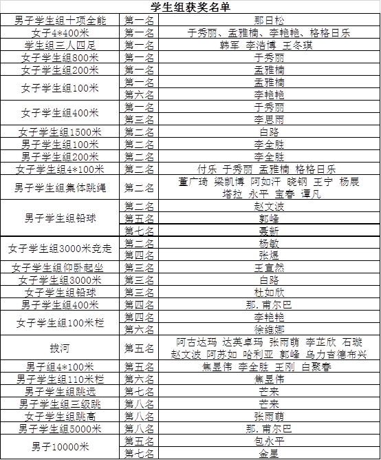 我院在校第五十四届校园田径运动会中喜获佳绩