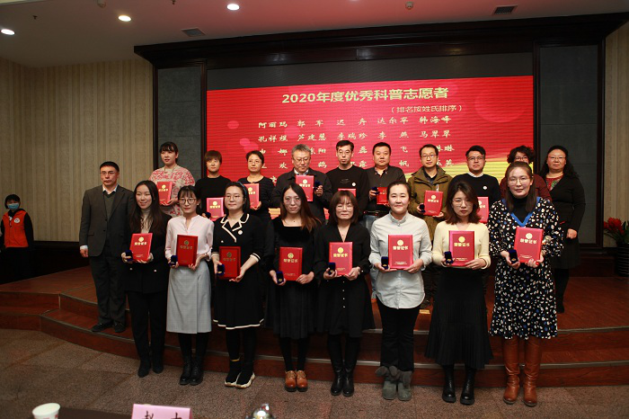 双全教授和杨缨常务副理事长为2020年度优秀科普志愿者颁发科普达人奖项