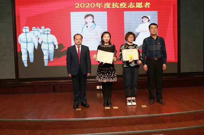 内蒙古社会组织党建办张德清指导员和伟德体育官网院长董同力嘎教授为新冠抗疫先进个人颁奖